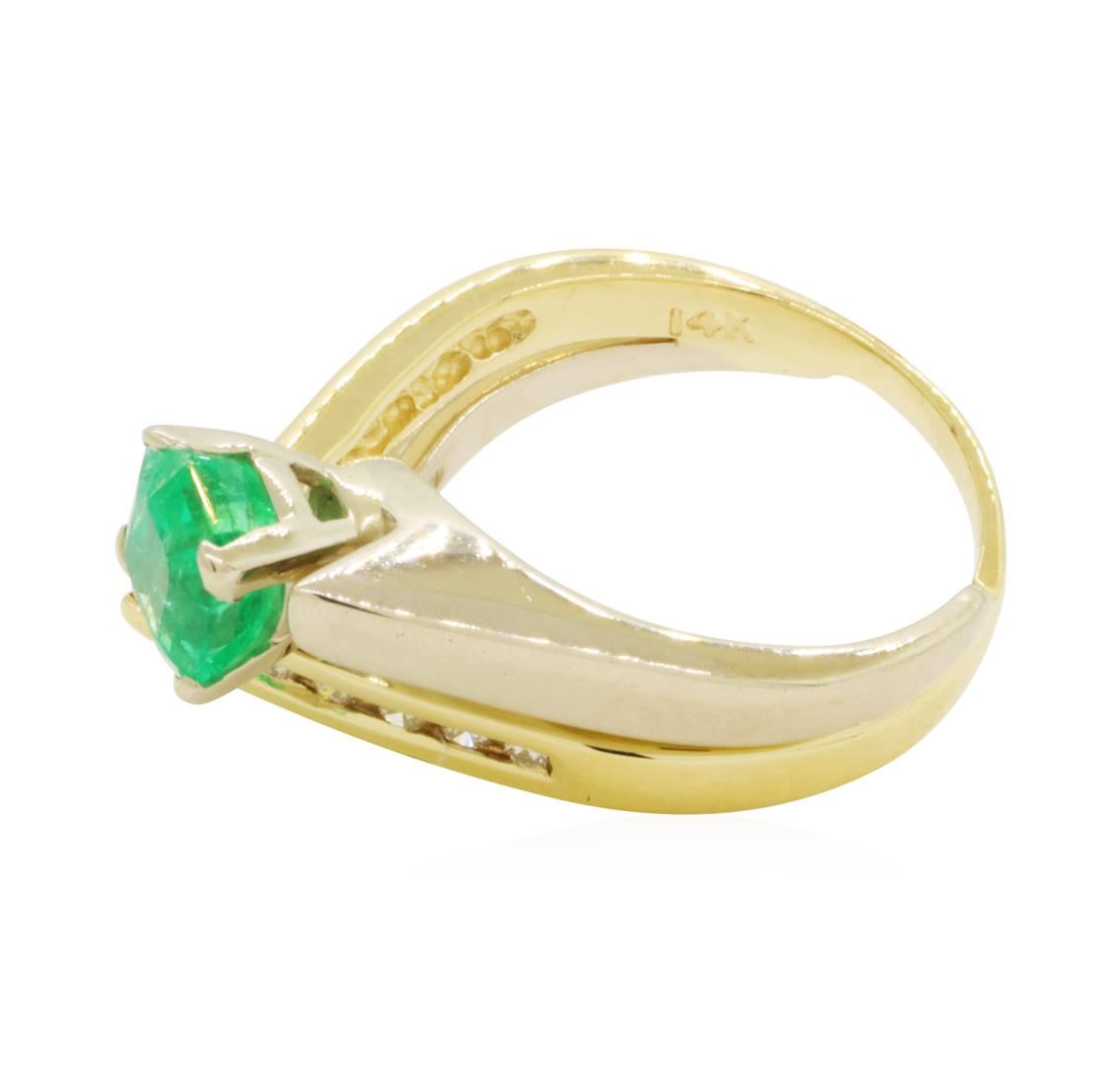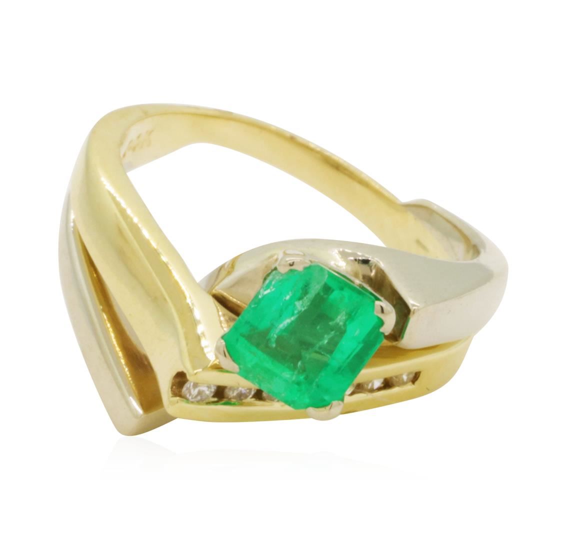 One lady's ring featuring: 14KT white and yellow gold weighing 6.5 grams containing one emerald weighing 1.20ct and diamonds weighing 0.15ctw.