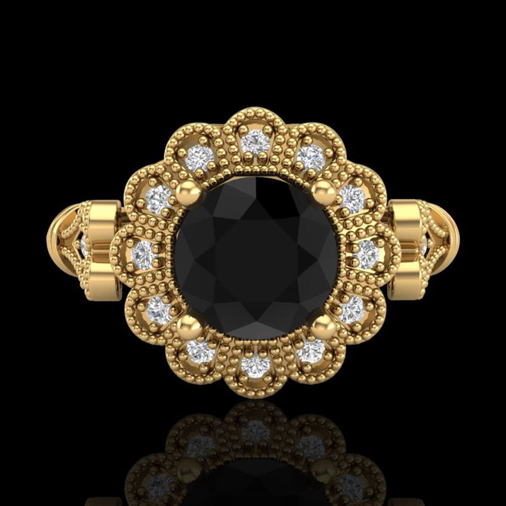 REF-107R3K - SKU: 37830 ---- 1.2 ctw Fancy Black Diamond Engagment Art Deco Ring 18k Yellow Gold