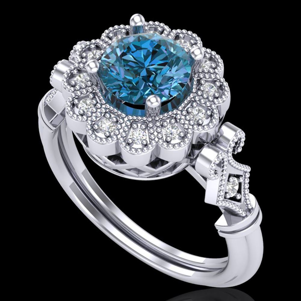 REF-218G2W - SKU: 37831 ---- 1.2 ctw Intense Blue Diamond Engagment Art Deco Ring 18k White Gold