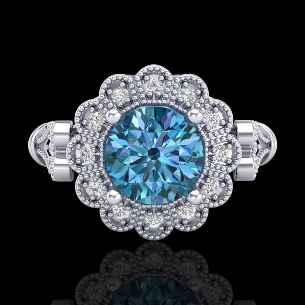 REF-218G2W - SKU: 37831 ---- 1.2 ctw Intense Blue Diamond Engagment Art Deco Ring 18k White Gold