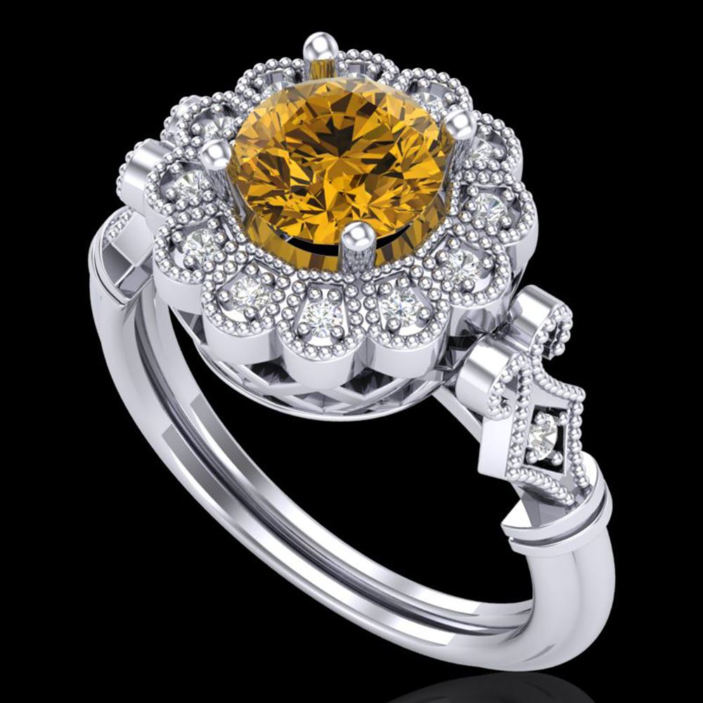 SKU: 37833 ---- 1.2 ctw Intense Fancy Yellow Diamond Art Deco Ring 18k White Gold