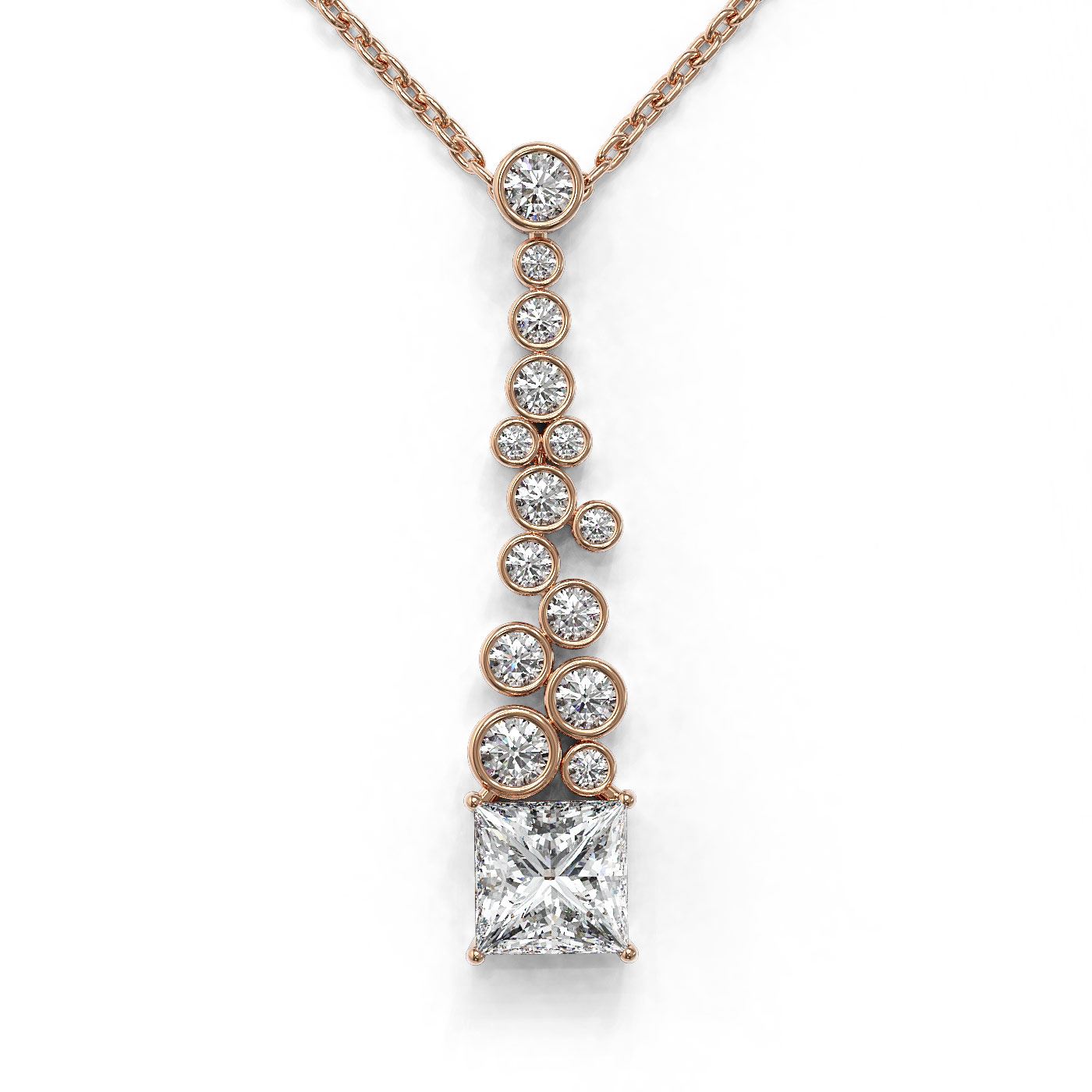 1.2 ctw Princess Cut Diamond Designer Necklace 18K Rose Gold