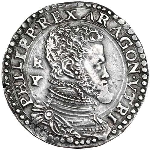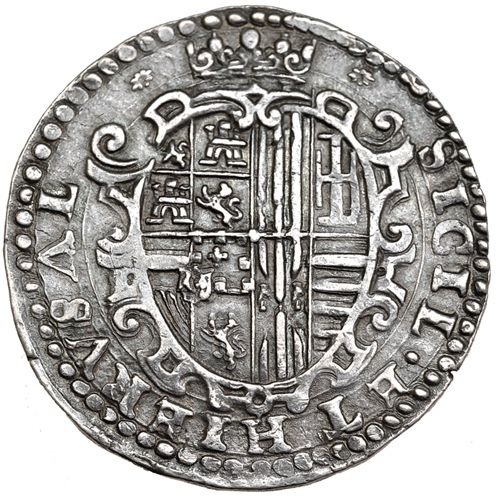 1/2 ducado. S/F. Nápoles. IBR(enlazadas)-VP. Ligeramente abrillantada. EBC-. Muy escasa en esta conservación.