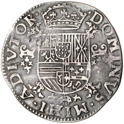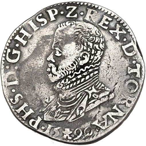 1/2 escudo Felipe. 1590. Tournai. Escudo de Portugal en el rev. DL-I, 77. MBC-.