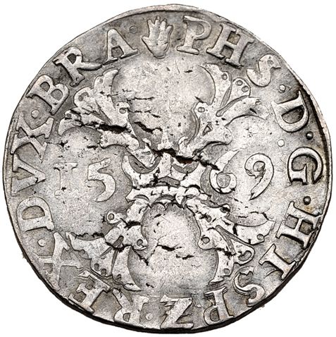 1/2 escudo de Borgoña. 1569. Amberes. DL-I, 97. Plata agria. MBC-.