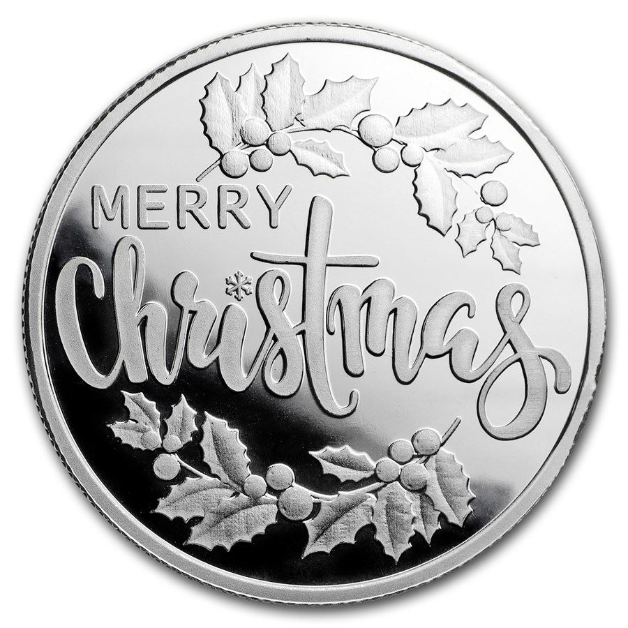 1/2 oz Silver Magnet Round - Merry Christmas (w/Keepsake Card)