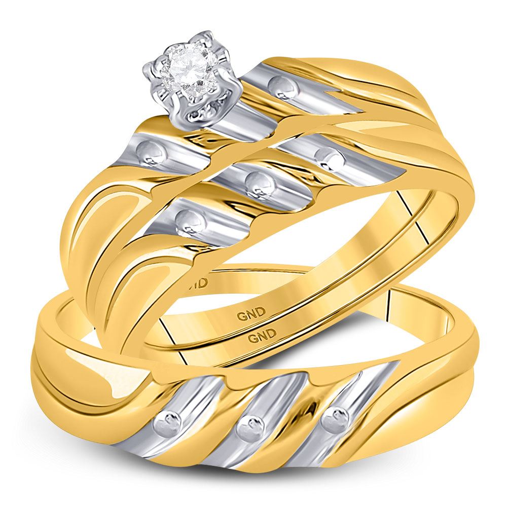 REF-40W8H - 1/20 CTW His Hers Round Diamond Solitaire Matching Wedding Set 14kt Yellow Gold - REF-40W8H