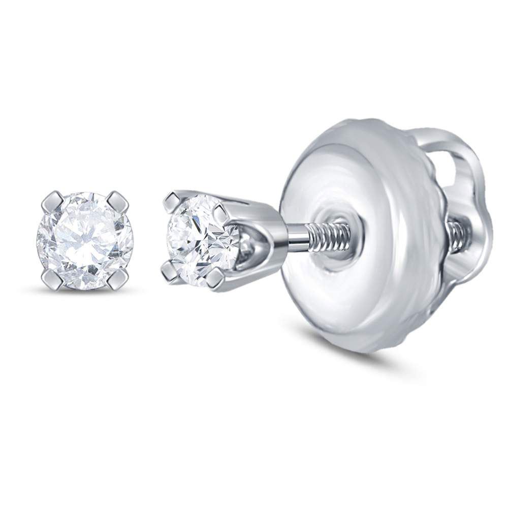 14kt White Gold Girls Infant Round Diamond Solitaire Stud Earrings 1/12 Cttw