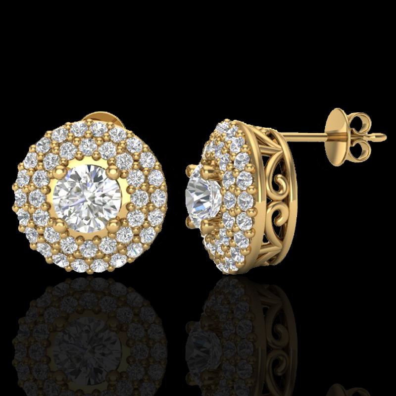 REF-118H2A -20198 ---- 1.20 CTW Micro Pave VS/SI Diamond Earrings 18K Yellow Gold ---- Luxury Designer Brand Earring Appraised at $6,500 Certificate Number US20198 18k Yellow gold, Earring Size is 3/8 Inches, Earring measuring approx. 6/16" X 6/16" , weighing in total approx. 4.4 grams. Made in the USA and is stamped 18k, Main stone 0.5 carat total weight containing 2 pieces of H-J color with VS/SI quality Round shape cut Diamond , Stone #2 0.7 carat total weight containing 80 pieces of H-I color with VS/SI quality Round shape cut Diamond