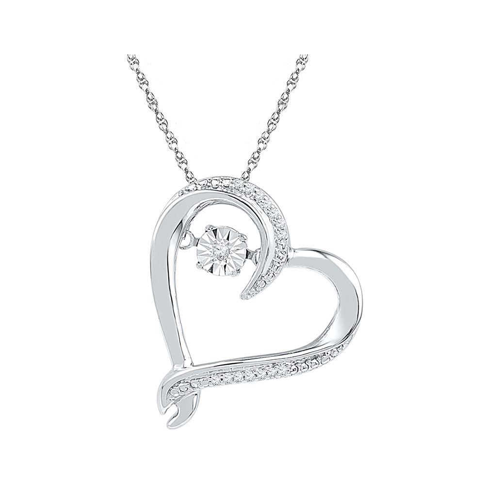 10kt White Gold Womens Moving Twinkle Round Diamond Heart Pendant 1/20 Cttw