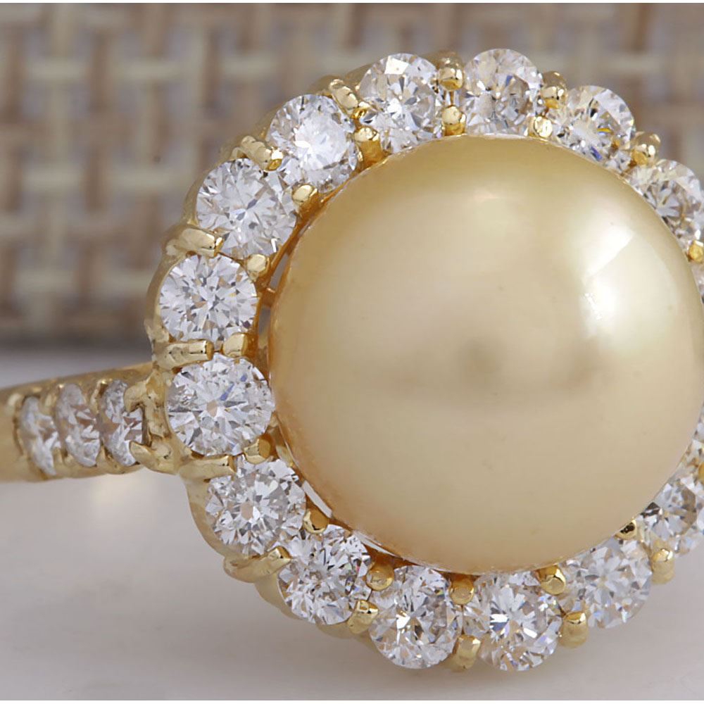 1.20 CTW Natural 10.70Mm Gold South Sea Pearl Diamond Ring 14K Yellow Gold