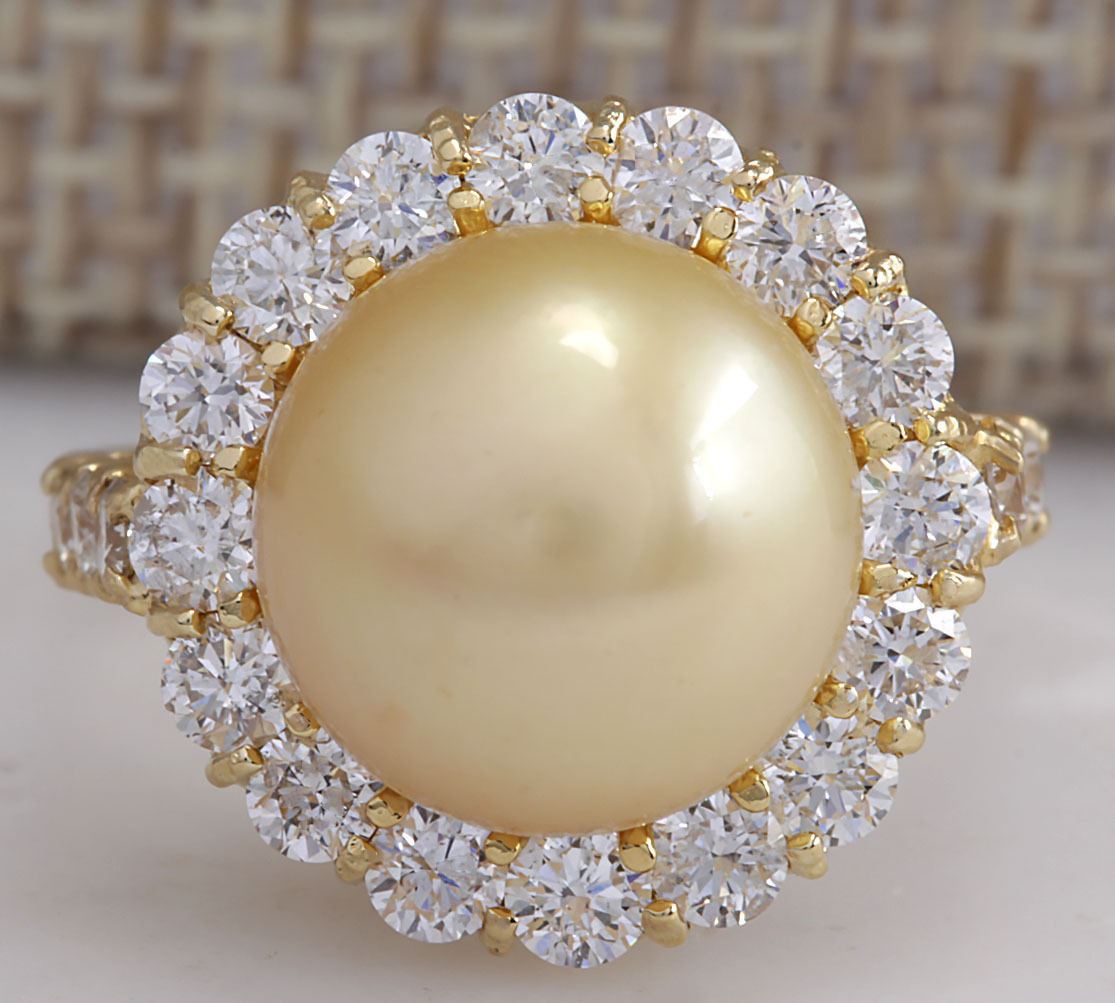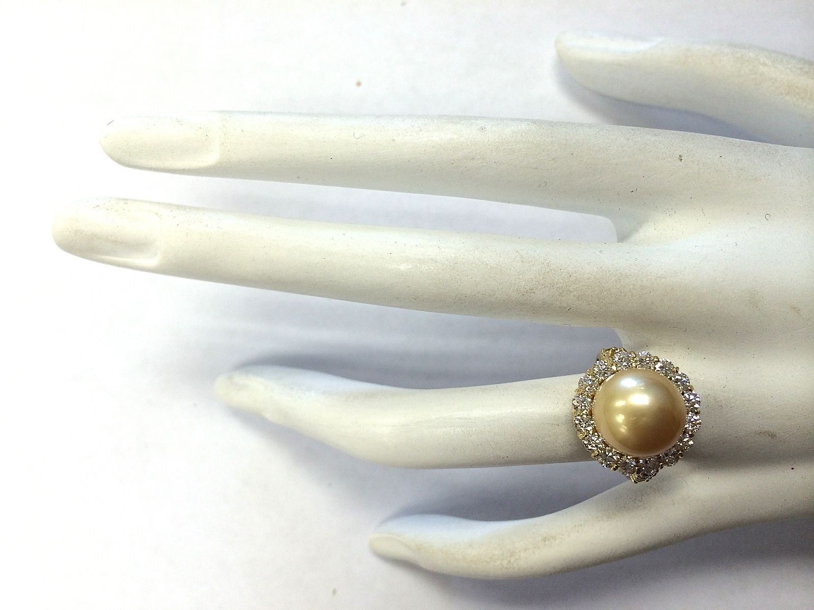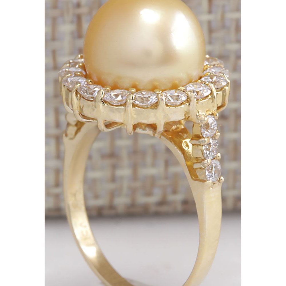 1.20 CTW Natural 10.70Mm Gold South Sea Pearl Diamond Ring 14K Yellow Gold