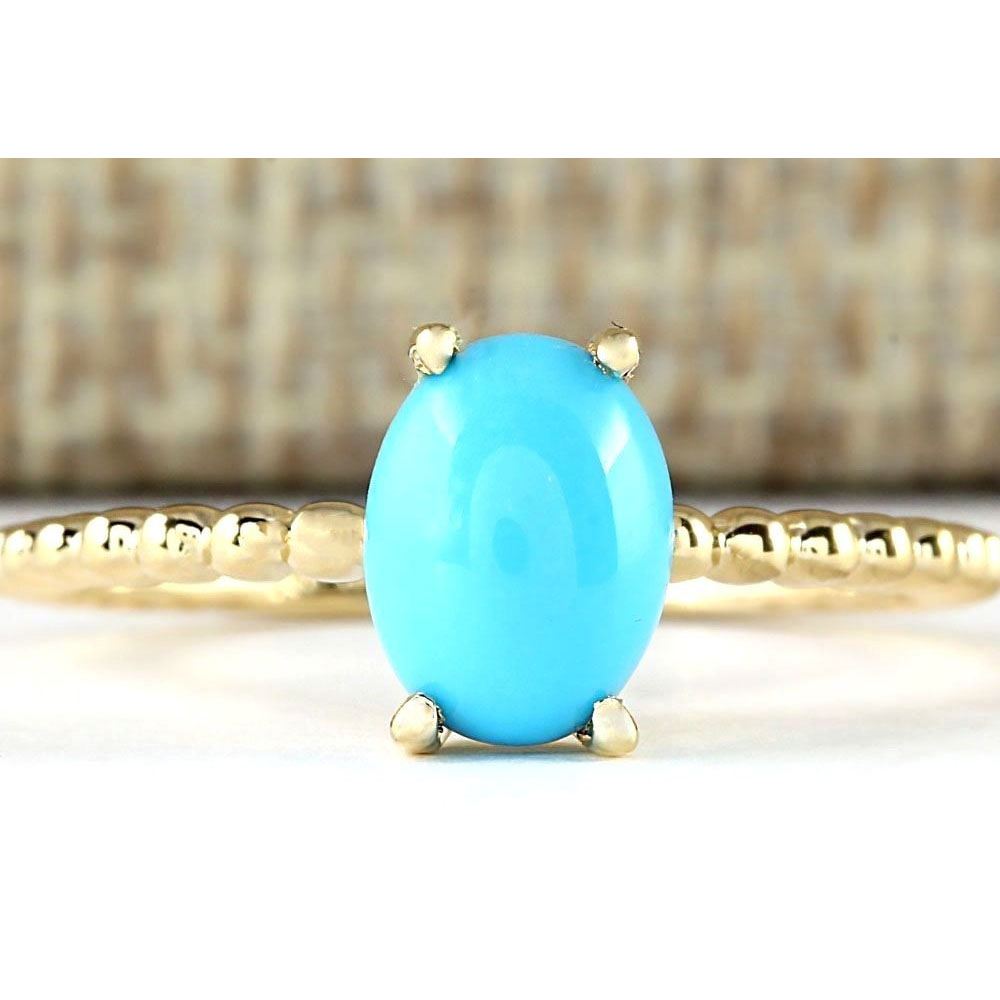 1.20 CTW Natural Turquoise Ring In 18K Yellow Gold