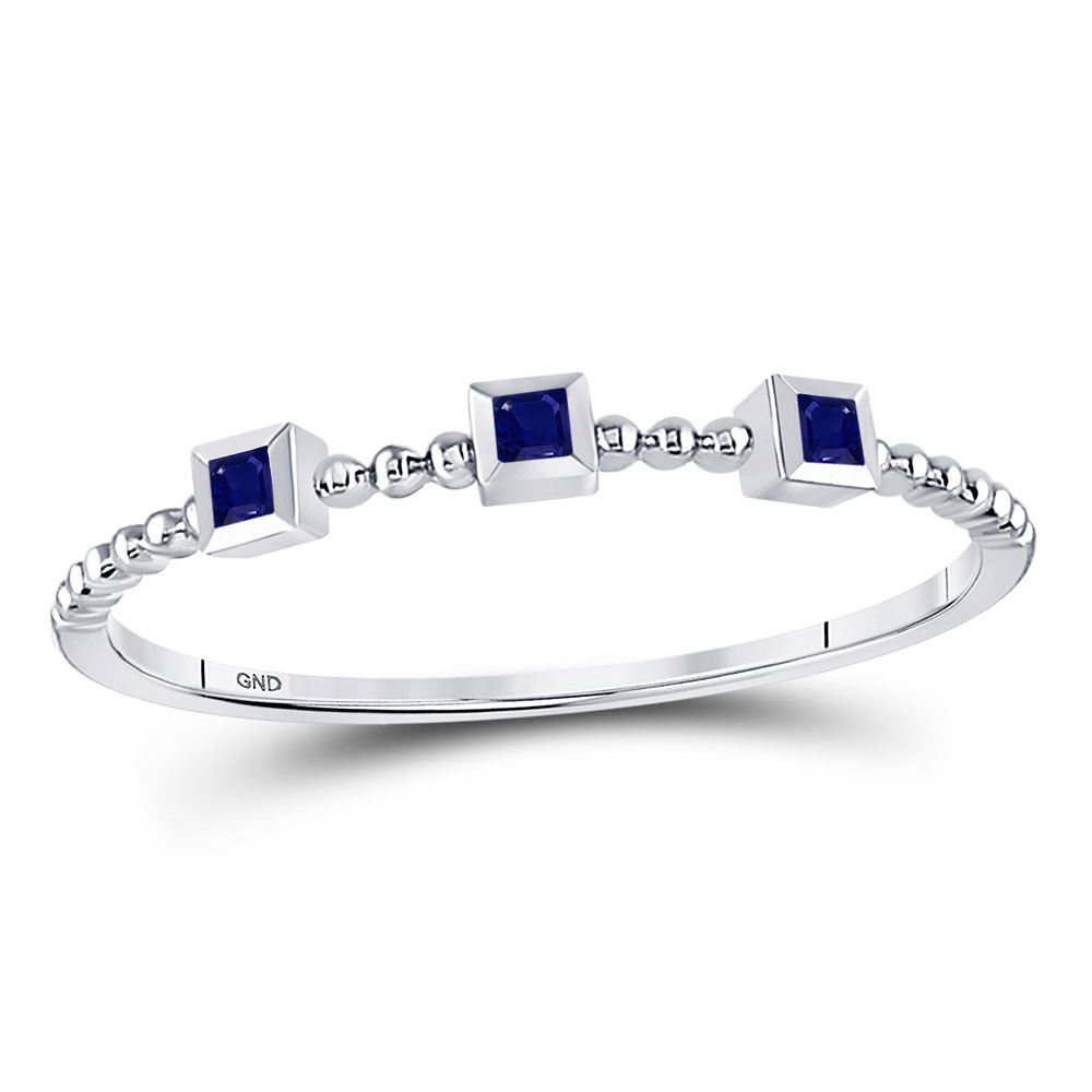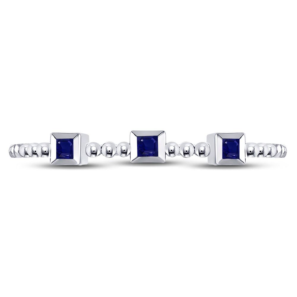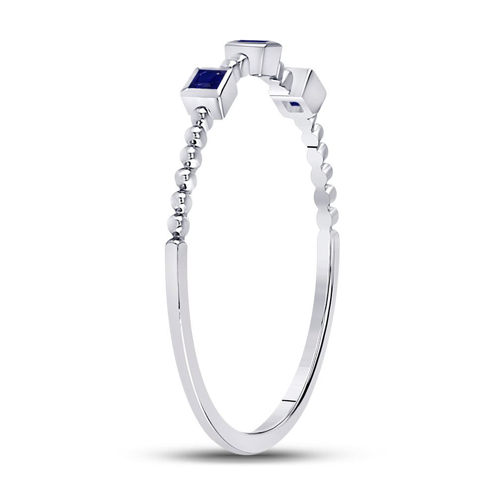 REF-5H9W ---- 1/20 CTW Princess Blue Sapphire 3-Stone Beaded Stackable Ring 10kt White Gold