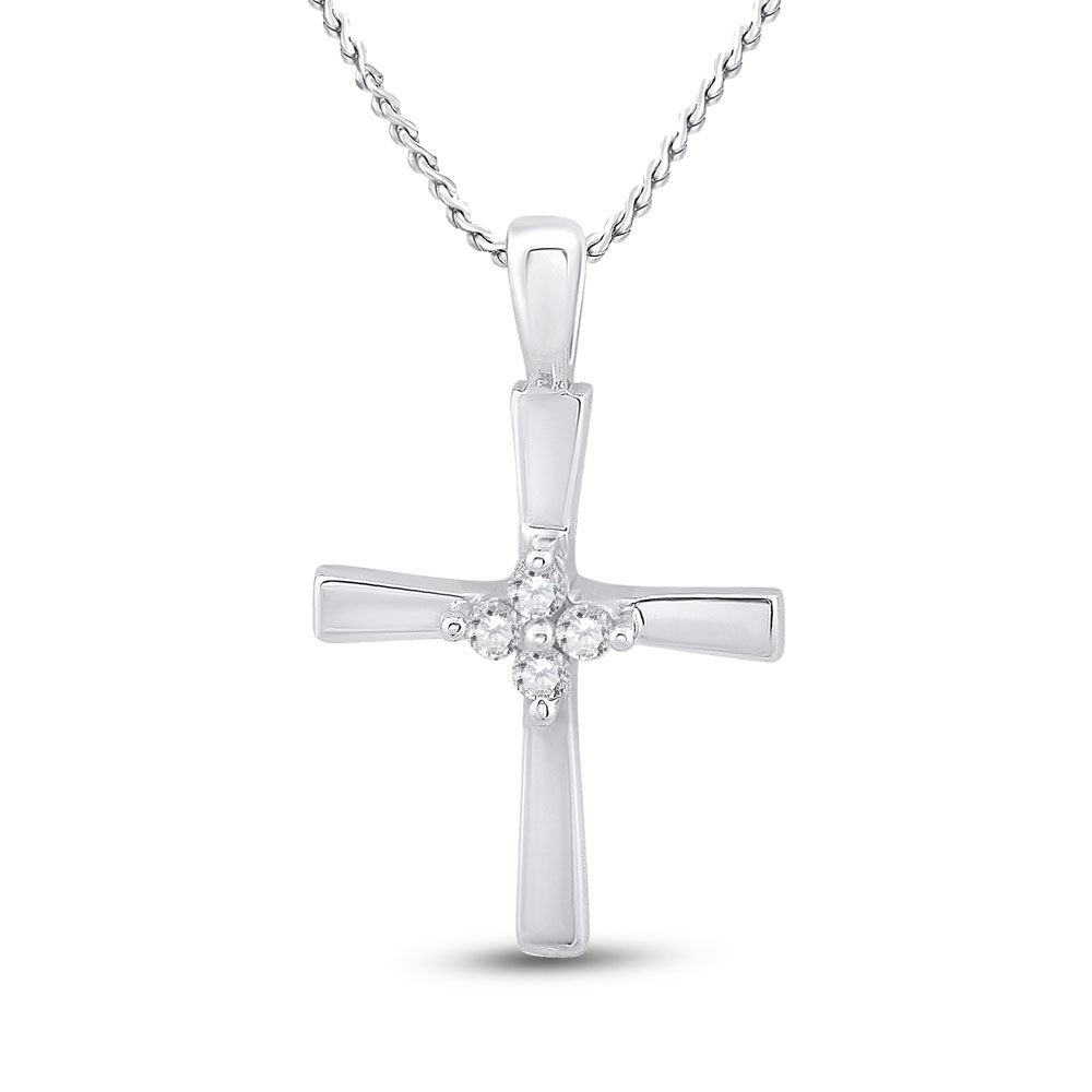 10kt White Gold Womens Round Diamond Simple Cross Religious Pendant 1/20 Cttw