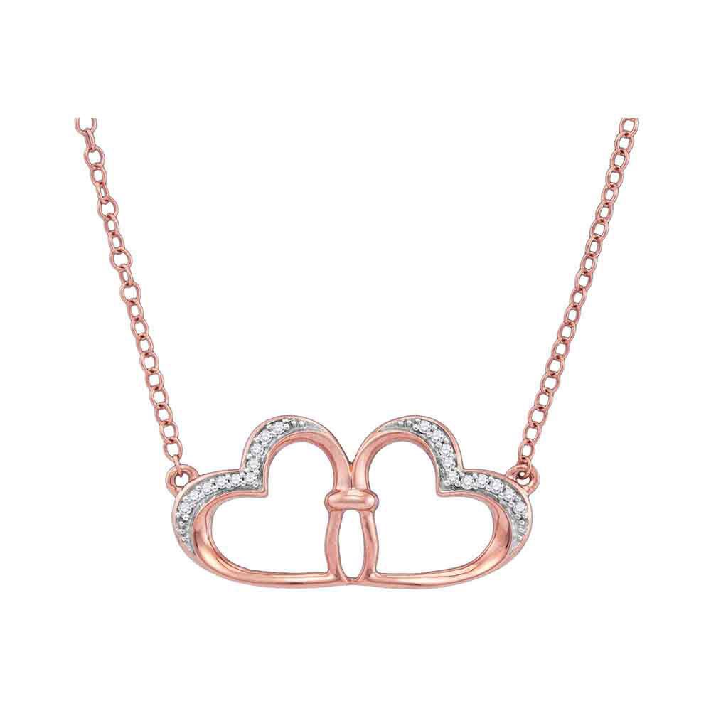 10kt Rose Gold Womens Round Diamond Heart Pendant Necklace 1/20 Cttw