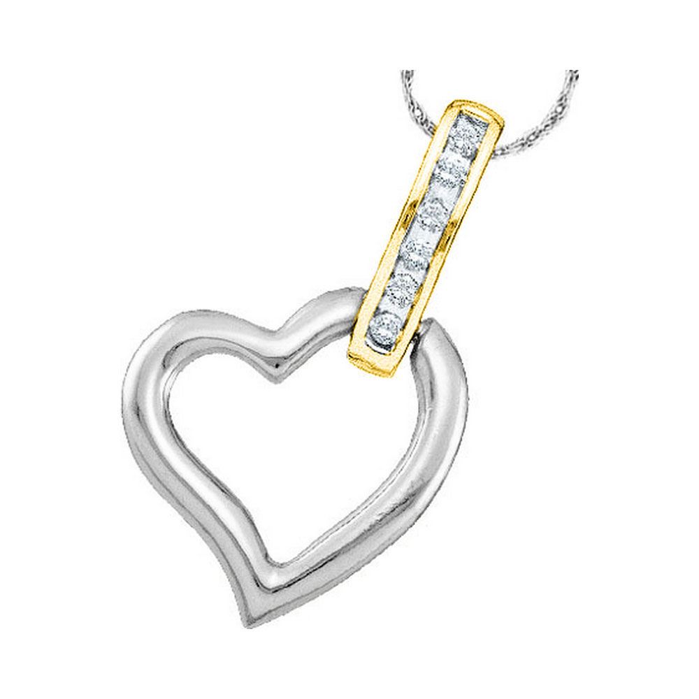 10kt White Two-tone Gold Womens Round Diamond Heart Pendant 1/12 Cttw