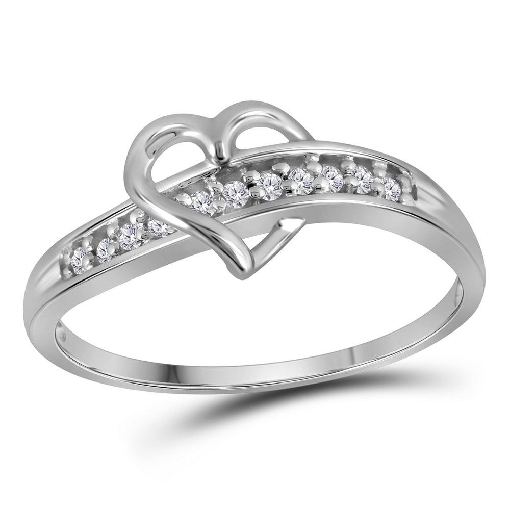 REF-7X5T ---- 1/20 CTW Round Diamond Heart Ring 10kt White Gold