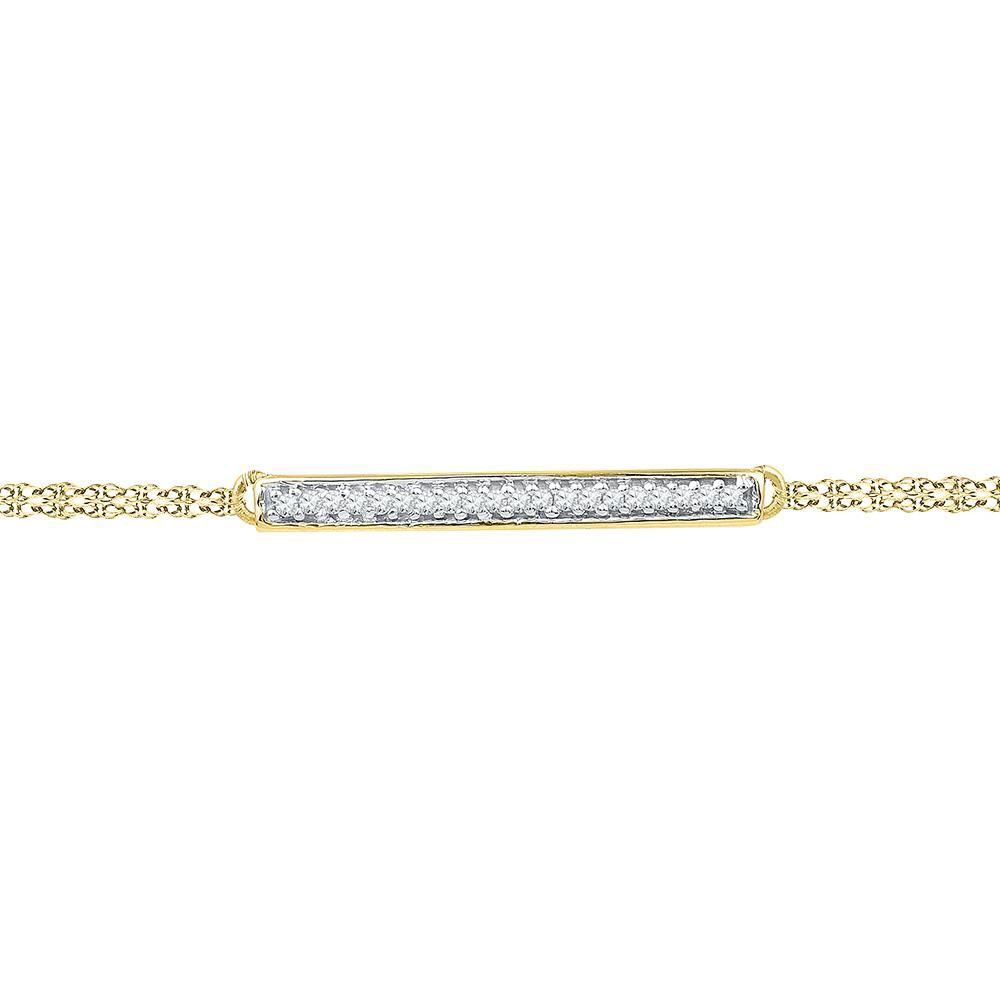 10kt Yellow Gold Womens Round Diamond Single Row Bar Fashion Bracelet 1/12 Cttw