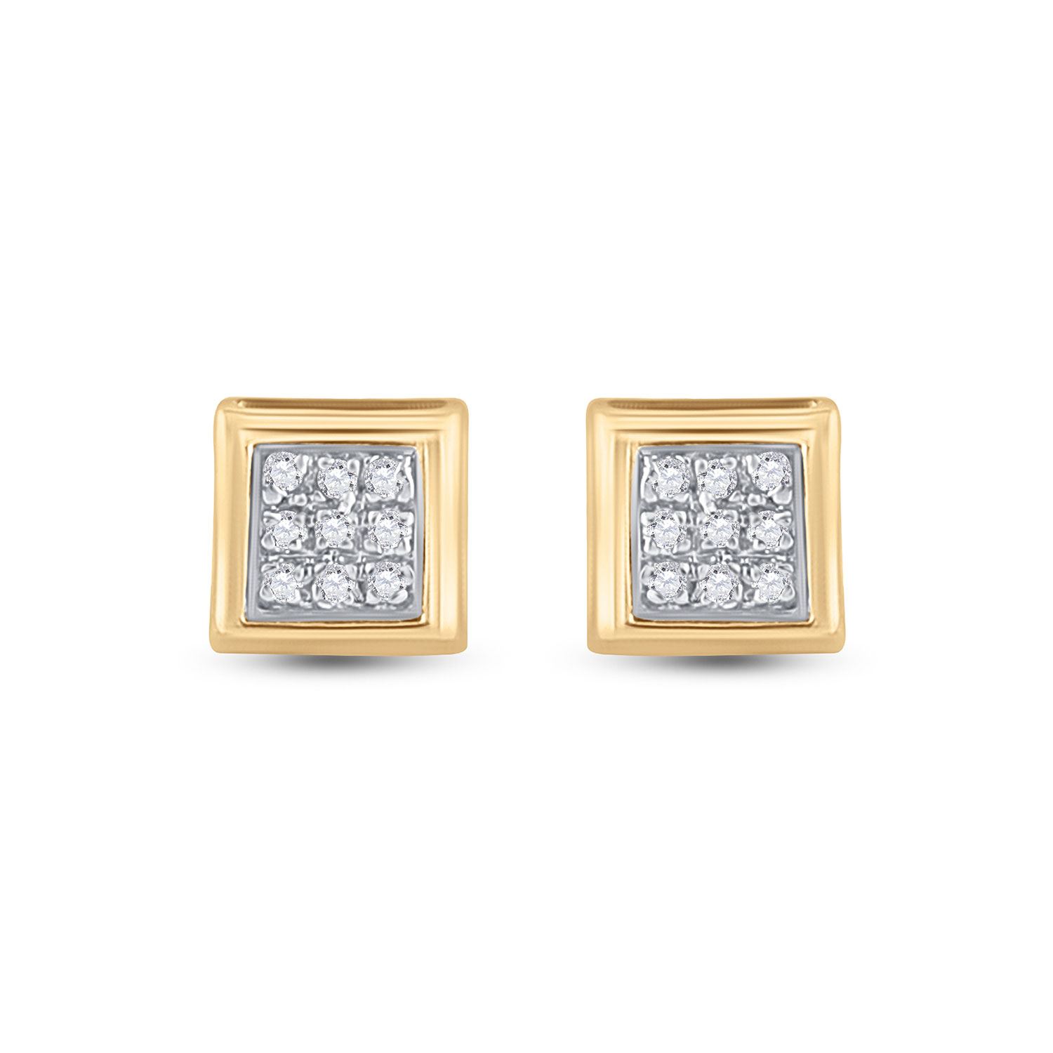 REF-4X8T ---- 1/20 CTW Round Diamond Square Earrings 10kt Yellow Gold