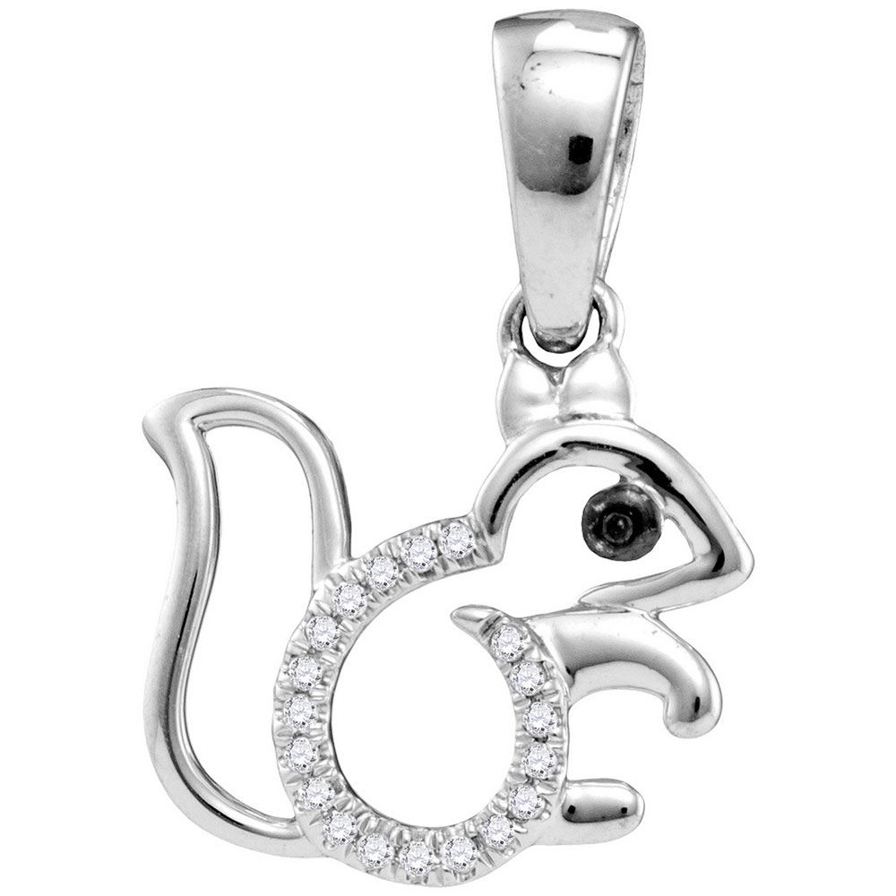 10kt White Gold Womens Round Diamond Squirrel Critter Pendant 1/20 Cttw