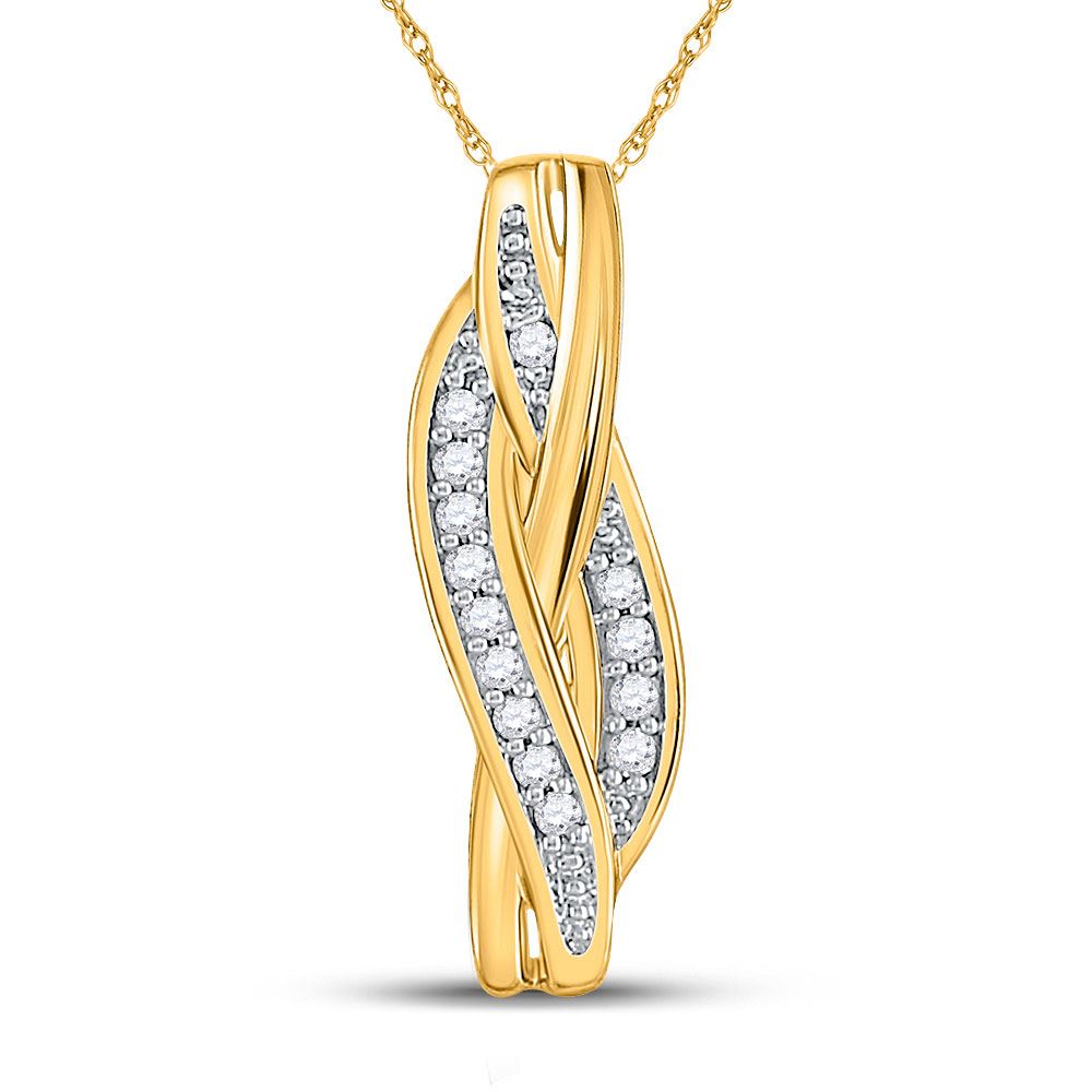 10kt Yellow Gold Womens Round Diamond Vertical Woven Strand Pendant 1/20 Cttw