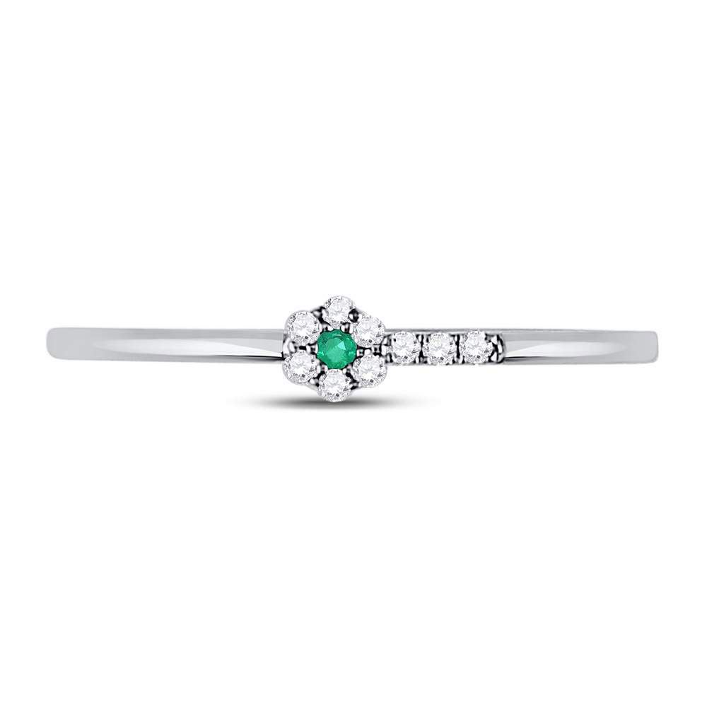 10kt White Gold Womens Round Emerald Diamond Stackable Band Ring 1/20 Cttw