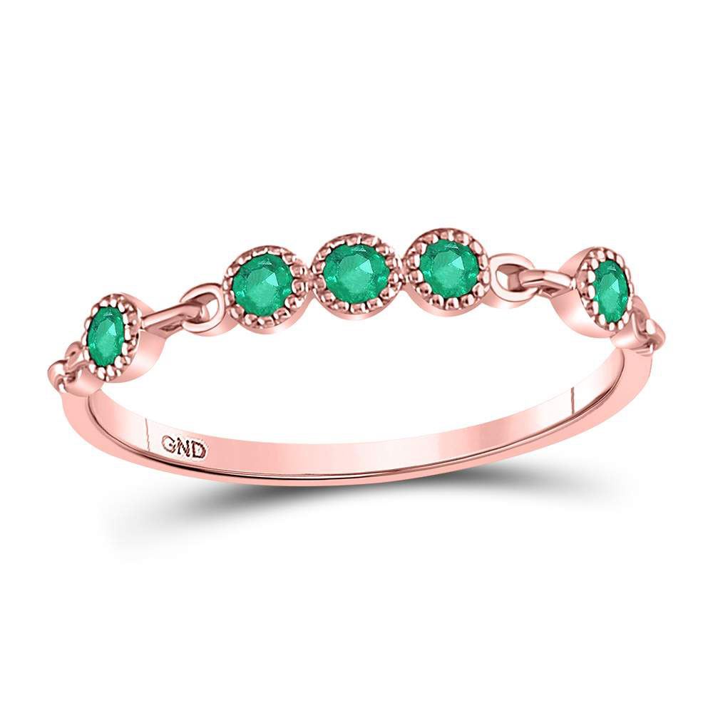10kt Rose Gold Womens Round Emerald Dot Stackable Band Ring 1/20 Cttw