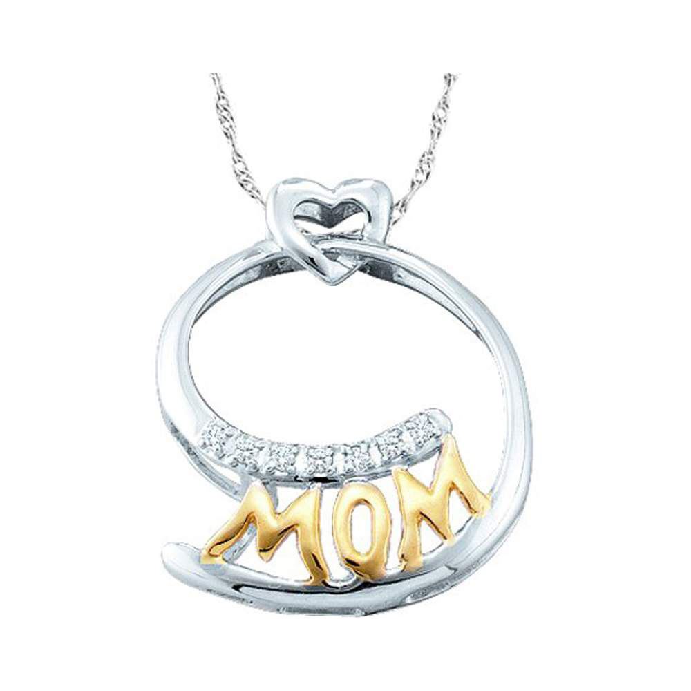 REF-6A7M - 1/20 CTW Womens Round Diamond Mom Mother Pendant 10kt Two-tone Gold - REF-6A7M