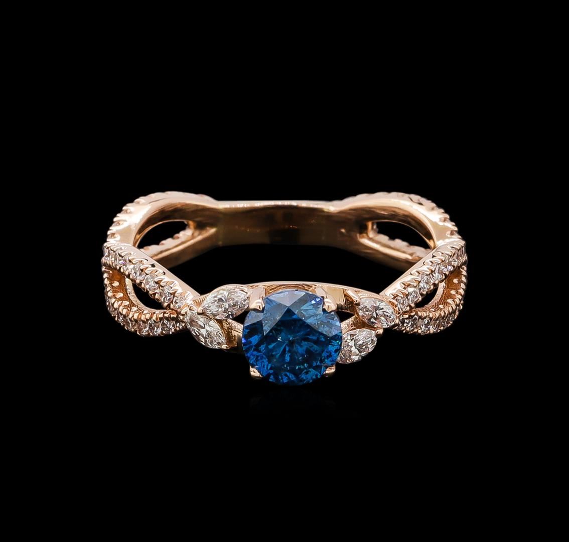 One ring : 14KT rose gold weighing 2.88gm containing one blue diamond with a total weight of 0.7ct and diamonds weighing 0.5ctw.
