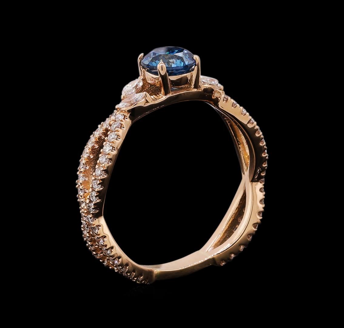 One ring : 14KT rose gold weighing 2.88gm containing one blue diamond with a total weight of 0.7ct and diamonds weighing 0.5ctw.