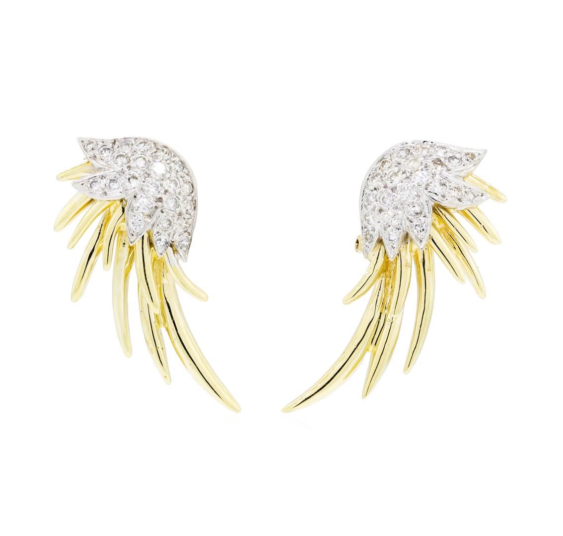 One pair of earrings featuring: 14KT yellow and white gold weighing 10.2 grams containing diamonds weighing 1.20ctw.