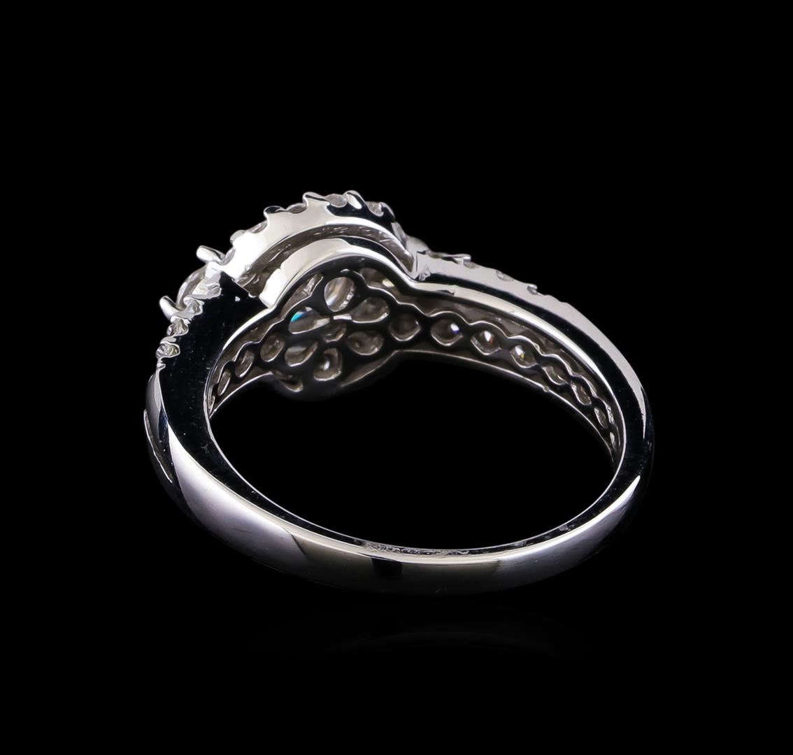 One electronically tested 14KT white gold lady's cast wedding ring split shank halo with a bright polish finish. The featured lady's ring has a shank measuring 2.13 millimeters in width. Identified with markings of "14K". Condition is new, good workmanship. Containing: One prong set round brilliant cut diamond, measuring 5.21 - 5.13 x 3.15mm (depth est.) approximate weight of 0.53ct. Graded in the setting. Clarity: SI-2. Color: Very Good Two prong set round brilliant cut diamonds, measuring 3.15 - 3.10 x 1.94mm (depth est.) approximate total weight of 2 Stones = 0.25ct. Graded in the setting. Clarity: VS-2 to SI-1. Color: H - I. Cut Very Good Twenty-Eight prong set round brilliant cut diamonds, measuring 1.60 - 1.50 x 0.96mm (depth est.) approximate total weight of 28 Stones = 0.42ct. Graded in the setting. Clarity: SI-1 to SI-2. Color: G - Good. Total Weight of Diamonds 1.20ct. Total Weight of Split Shank Halo 3.50gm. GAS Appraised at $6,185.00.
