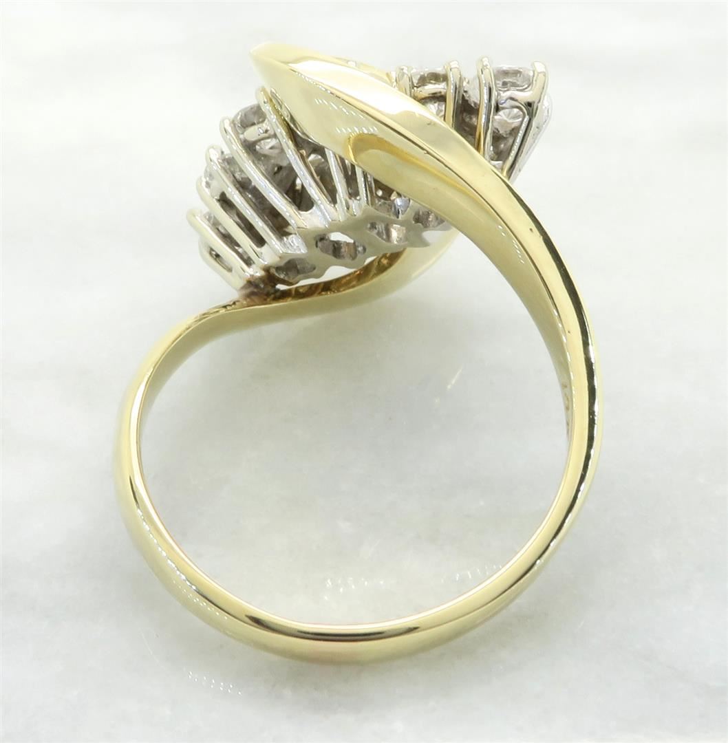 One tested 14K Yellow Gold diamond ring. Containing: 12 Round Brilliant Cut Diamonds. Clarity: SI-I, Color: G-I. Approximate total diamond weight: 1.20 CTW. All diamonds are graded in the mounting unless otherwise stated. Weight of ring: 6.4 grams, Size: 6.75