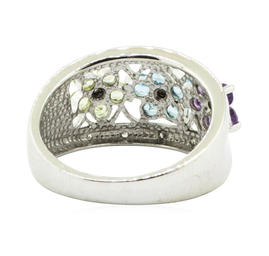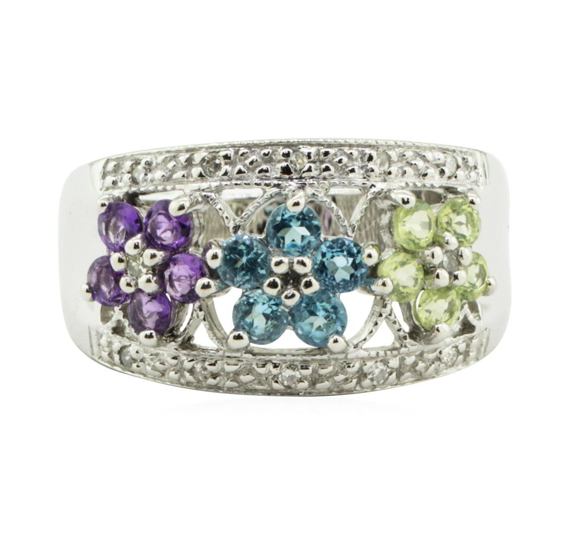 1.20 ctw Multi-Colored Gemstone and Diamond Ring - 14KT White Gold
