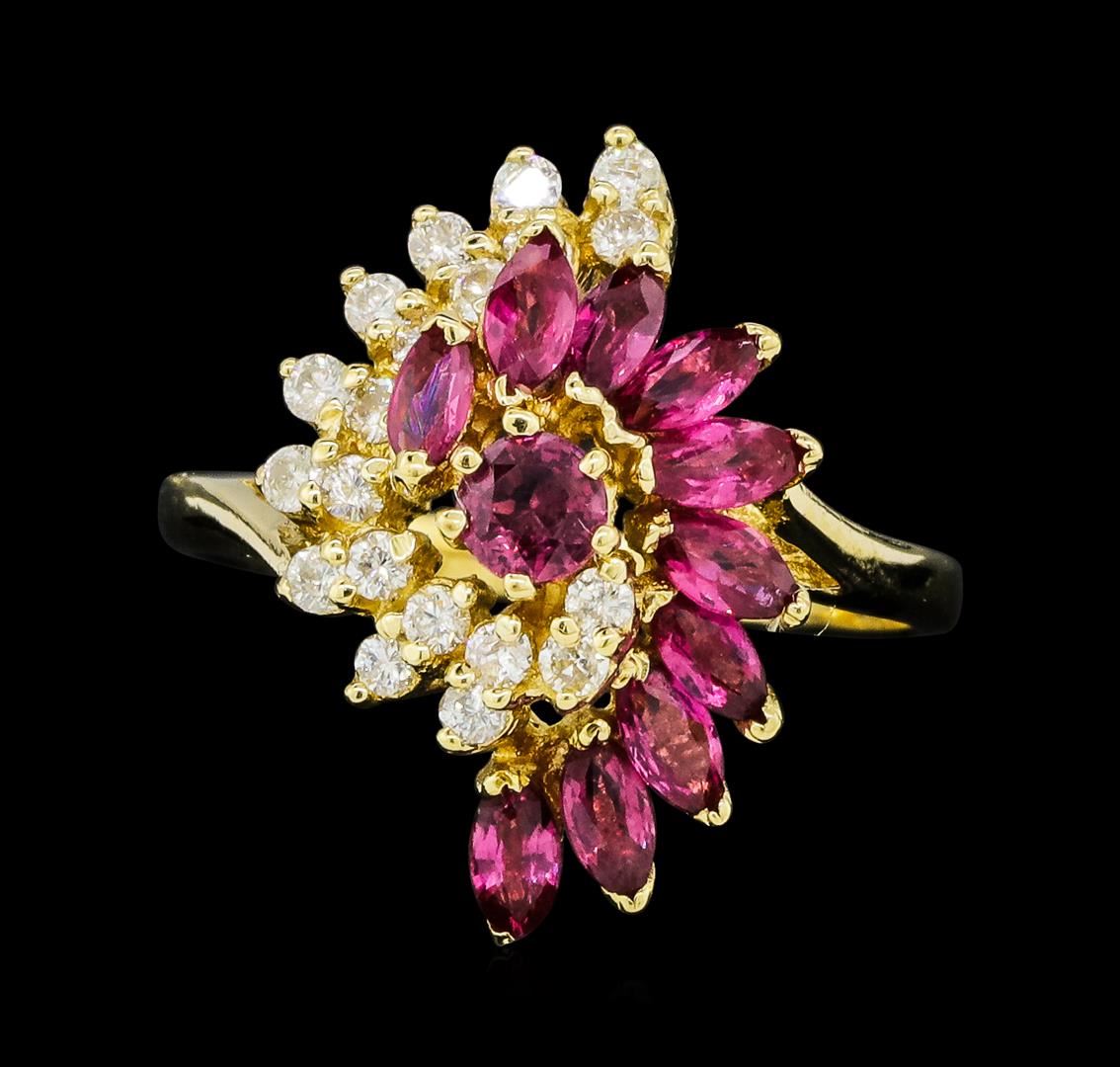 One lady's ring featuring: 14KT yellow gold weighing 4.1 grams containing rubies weighing 1.20ctw and diamonds weighing 0.40ct.