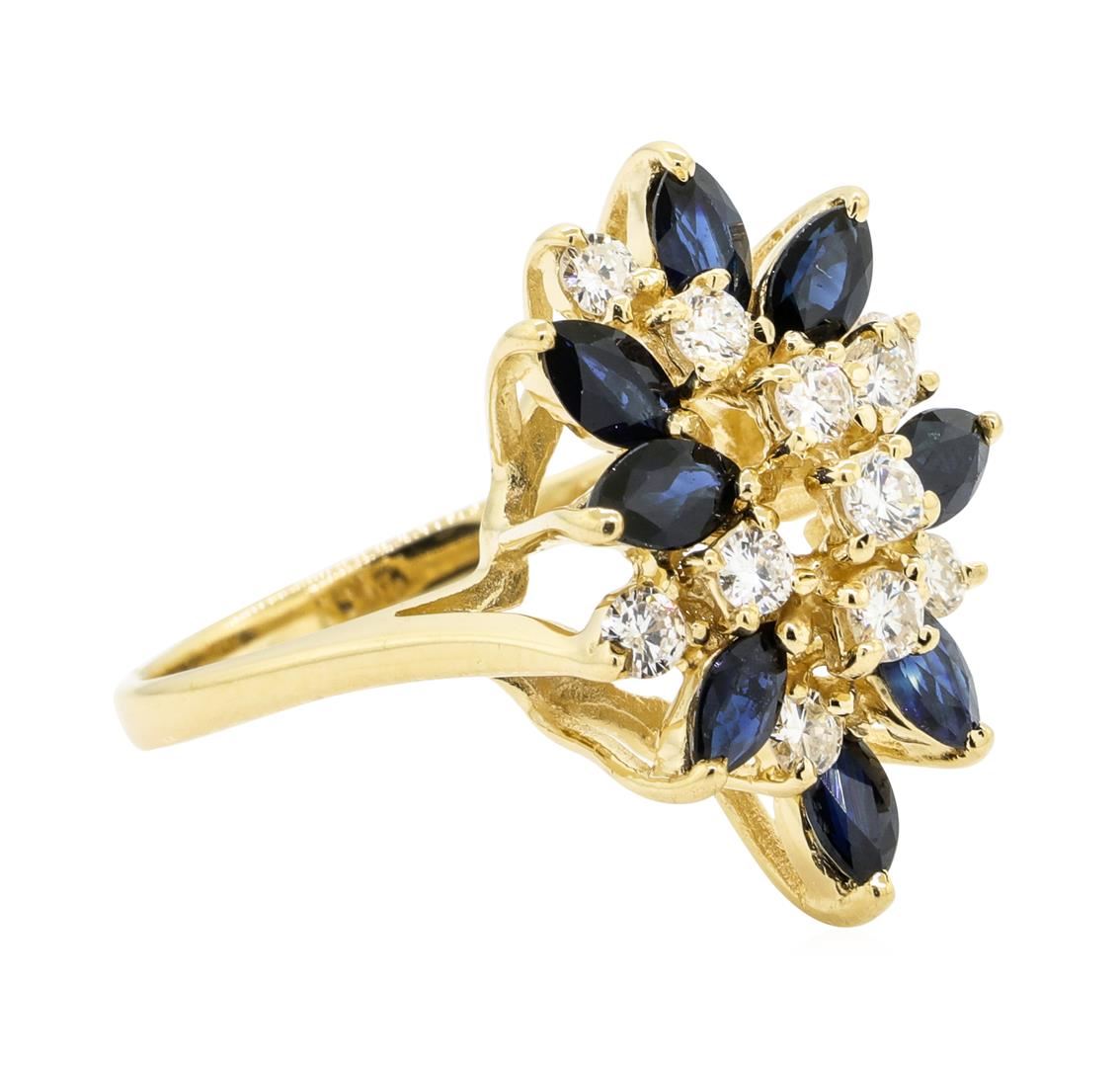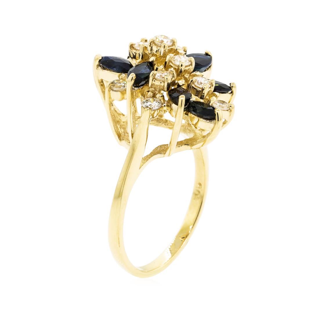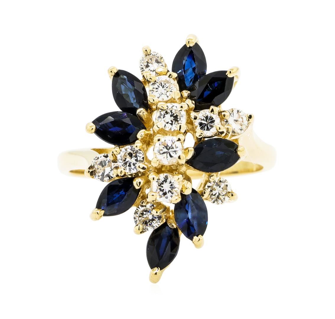 One lady's ring featuring: 14KT yellow gold weighing 5.60 grams containing sapphires weighing 1.20ctw and diamonds weighing 0.65ctw.
