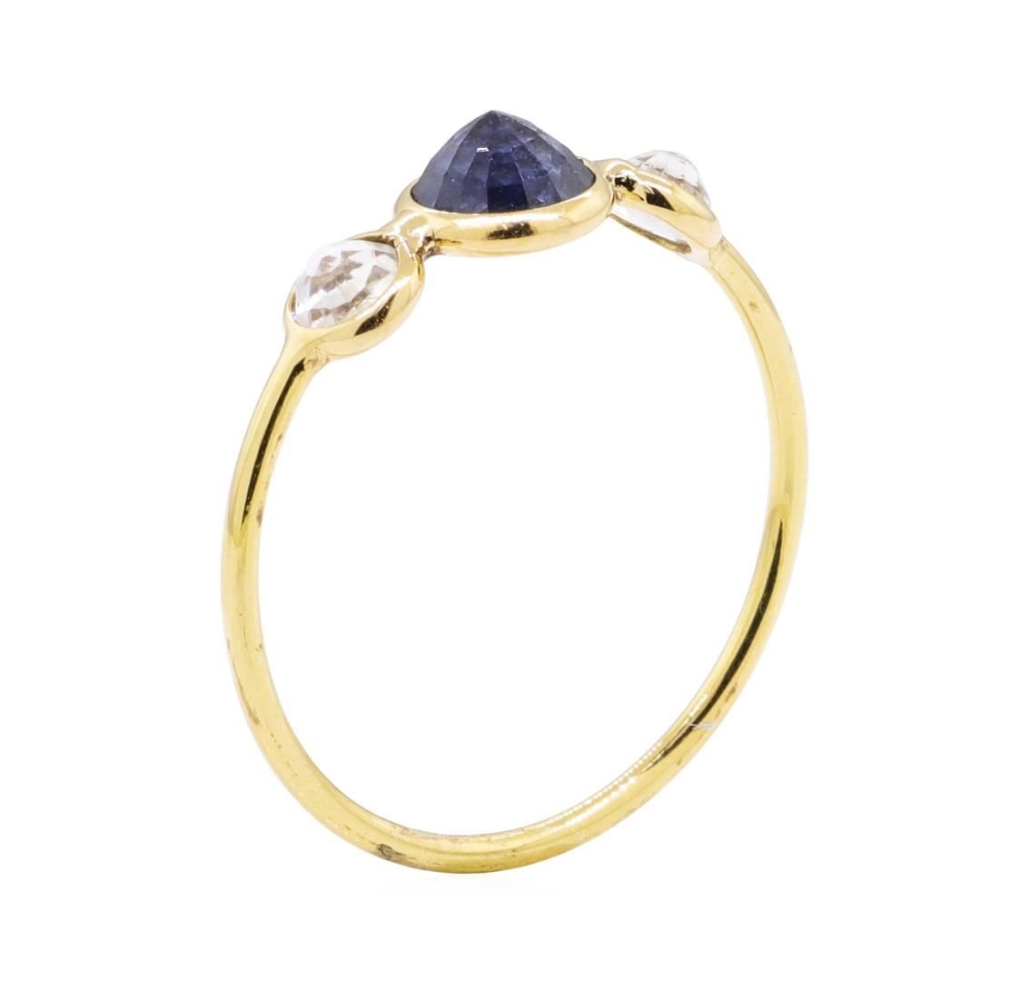 One ring featuring: 18KT yellow gold weighing 1.0 grams containing one sapphire weighing 0.80 ct and two moonstones weighing 0.40 ctw.