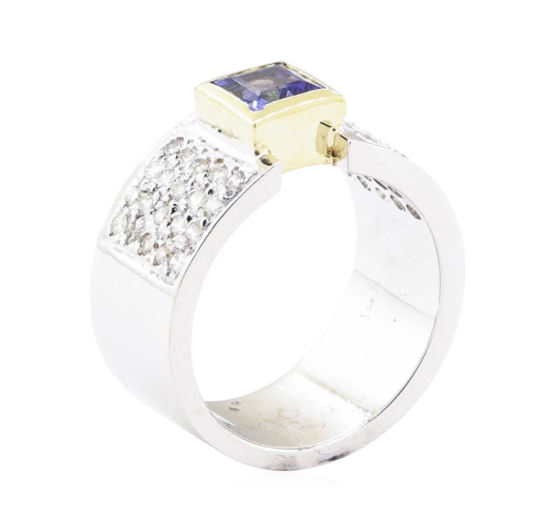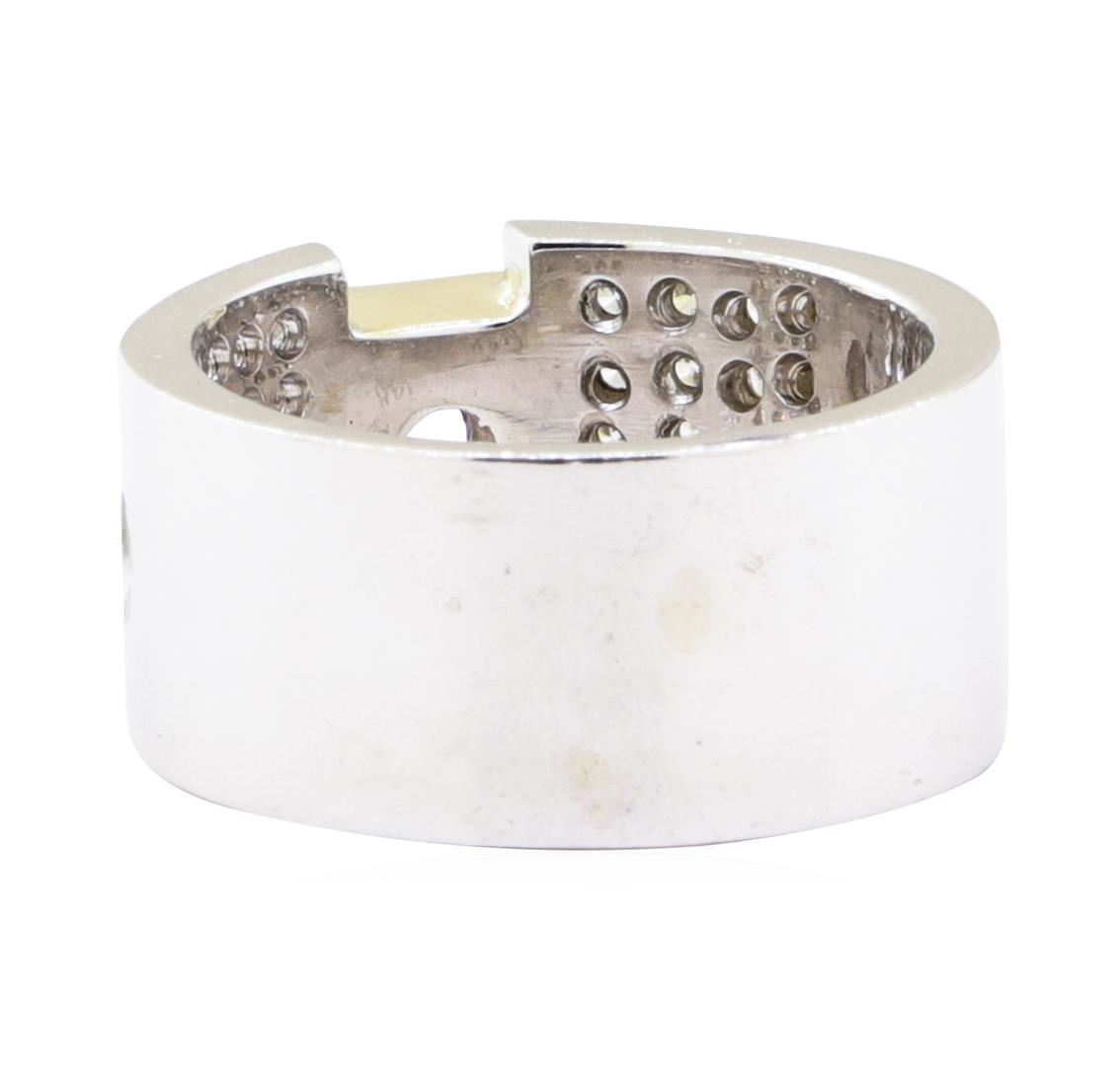 One electronically tested 14KT white and yellow gold lady's combination cast & assembled fashion ring with a wide band motif with a bright polish finish. The featured lady's ring has a shank measuring 9.30 millimeters wide. Identified with markings of '14