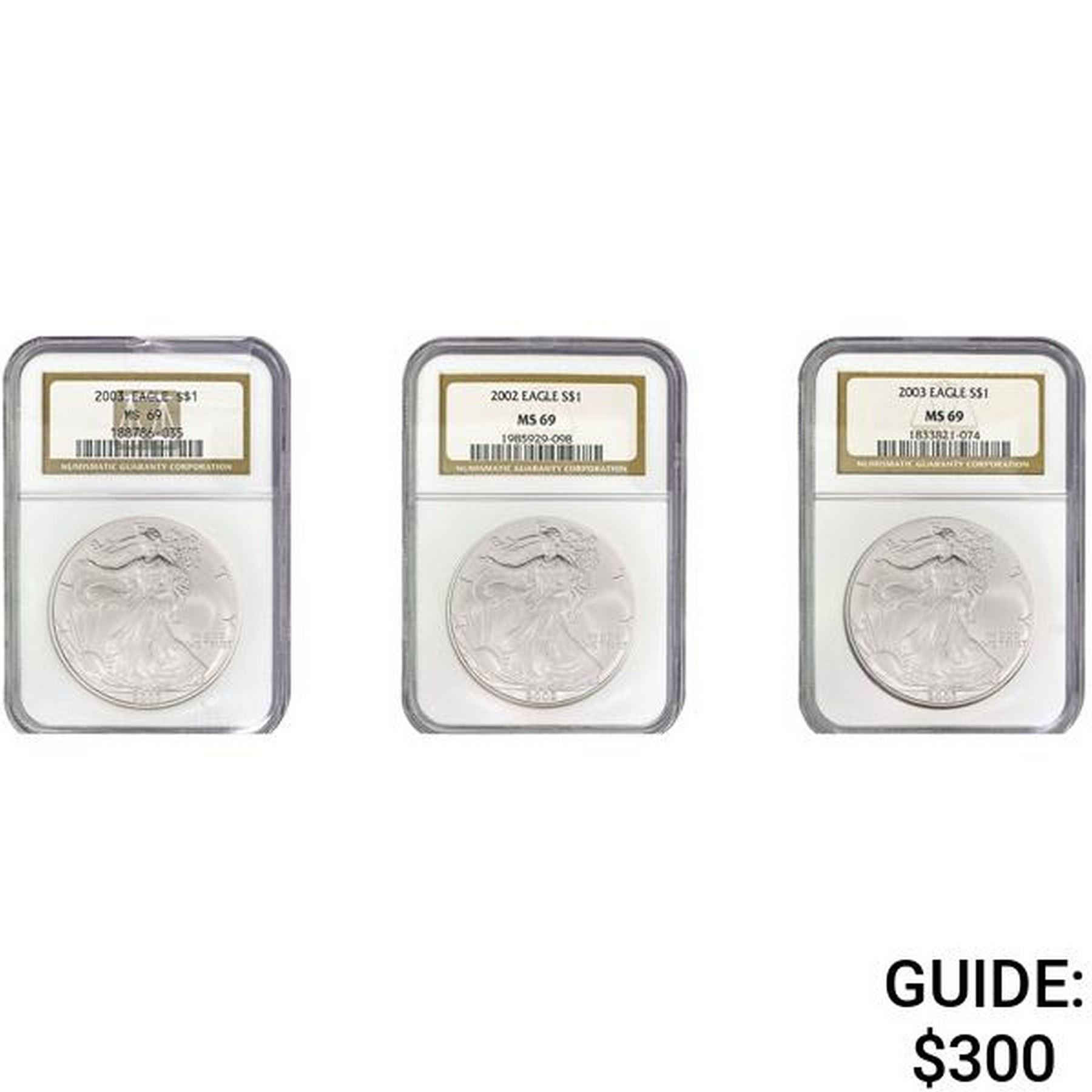 [1] 2002 [2] 2003 American Silv Eagle $1 NGC MS69