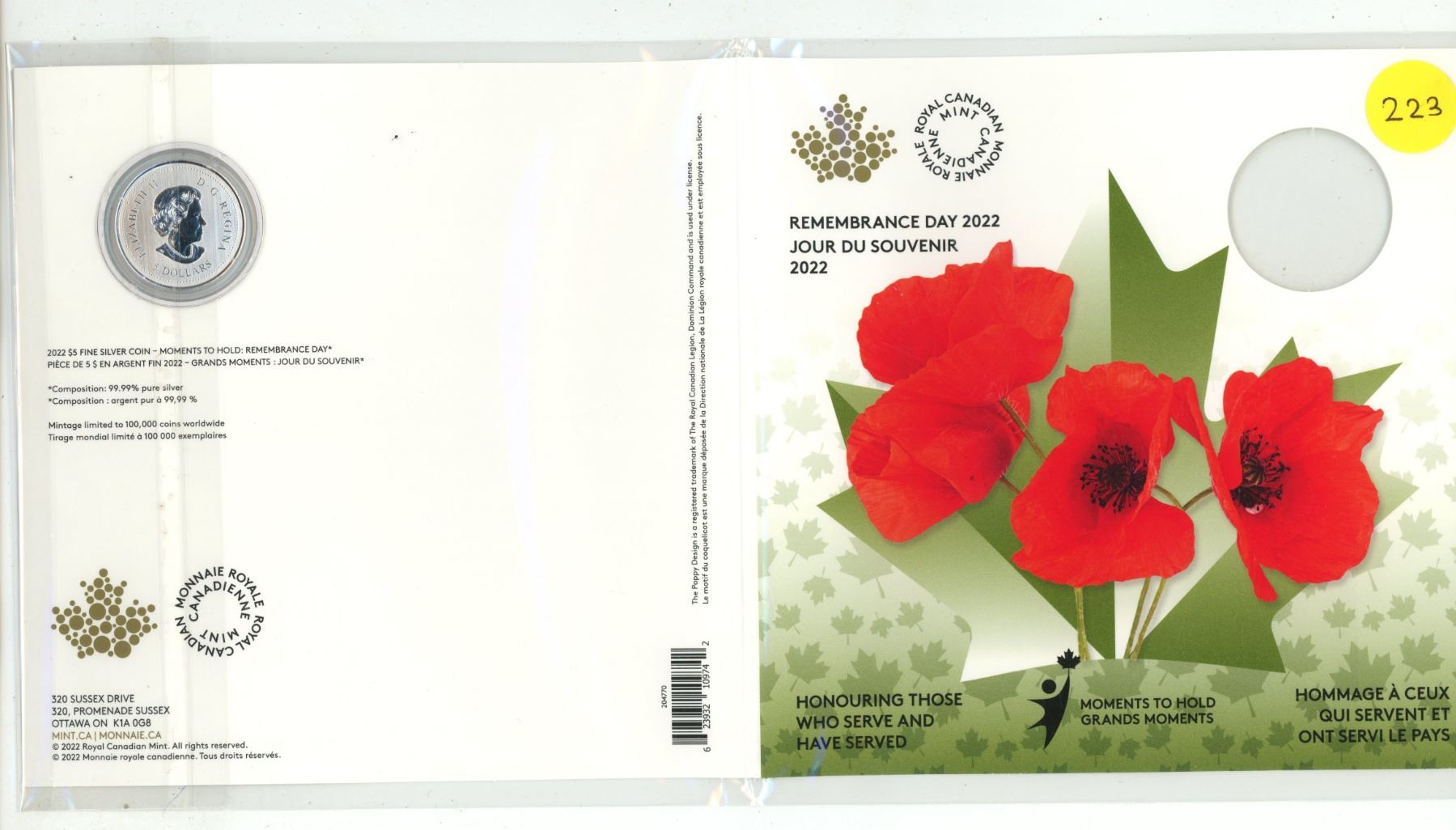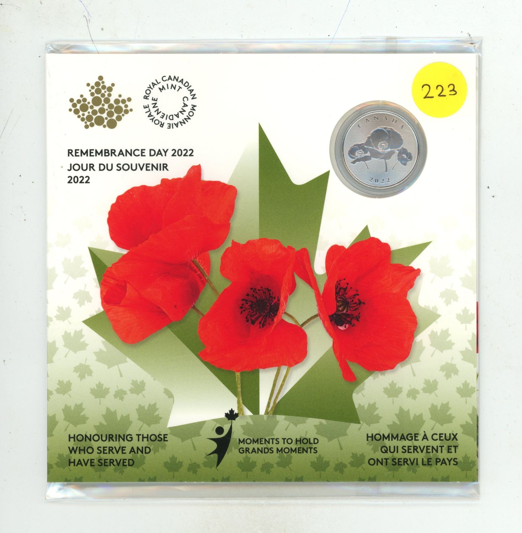 1-2022 $5.00 Dollar Silver Coin (Remembrance Day 2022) ¼ Ounce Pure Silver