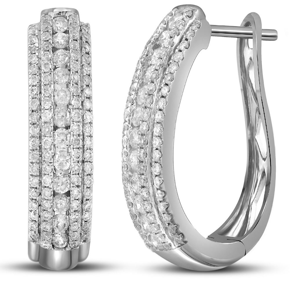 REF-142M4H- SKU: GD110656 ---- 1.21 CTW Diamond Oblong Hoop Earrings 14KT White Gold