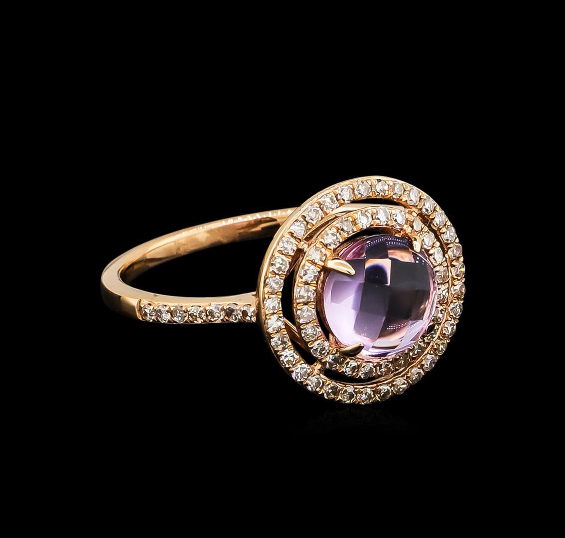 One ring featuring: 14KT rose gold weighing 2.70 grams containing one amethyst with a total weight of 1.21ct and side diamonds with a total weight of 0.37ct.