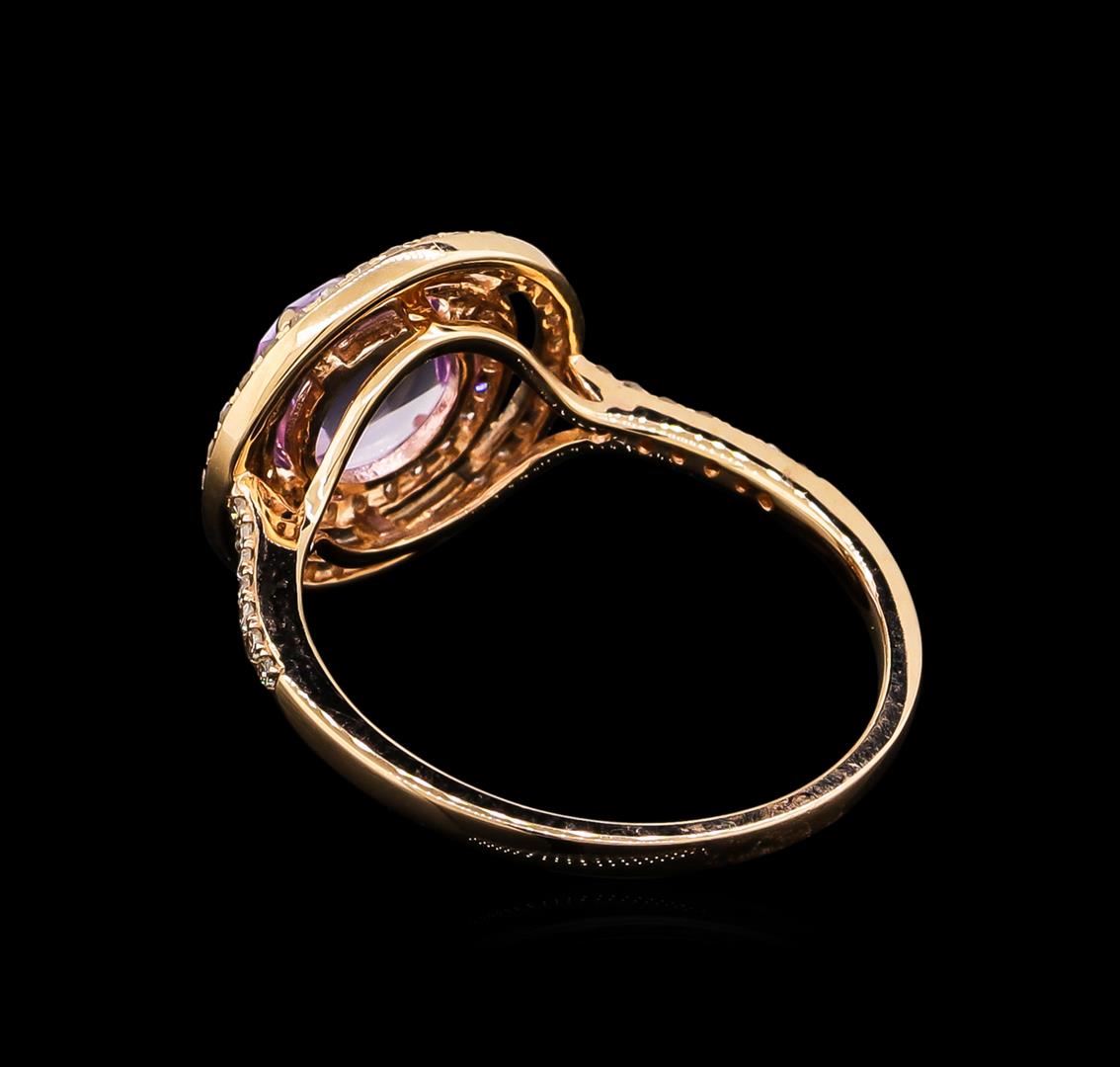 One ring featuring: 14KT rose gold weighing 2.70 grams containing one amethyst with a total weight of 1.21ct and side diamonds with a total weight of 0.37ct.