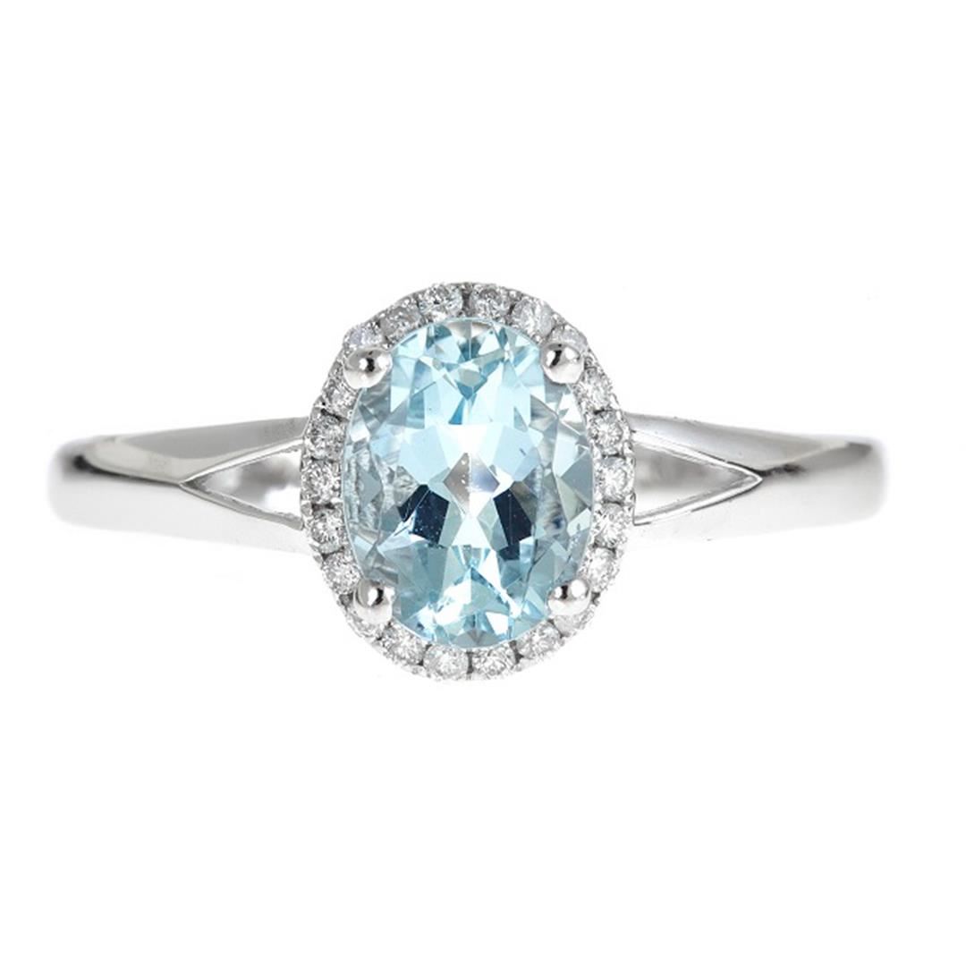 One Ring featuring: 14KT White Gold weighing 2.14 grams containing Aquamarine with an approximate weight of 1.21ct, Diamond with an approximate weight of 0.12ct, and with an approximate weight of ct.