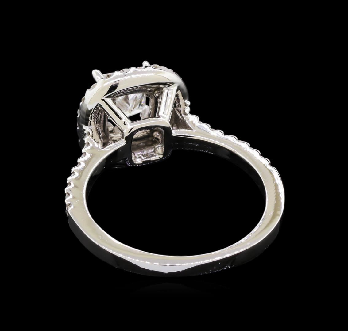 One electronically tested 14KT white gold lady's cast wedding ring with a double basket halo with a bright polish finish. The featured lady's ring has a shank measuring 1.73 millimeters wide. Identified with markings of "14K". Condition is new, good workmanship. Containing: One prong set princess rectangular cut diamond, measuring 5.29 x 4.64 x 3.35mm (depth est.) approximate weight of 0.74ct. Graded in the setting. Clarity: I-1. Color: G - Very Good Thirty-Eight prong set round brilliant cut diamonds, measuring 1.40 - 1.30 x 0.84mm (depth est.) approximate total weight of 38 Stones = 0.37ct. Graded in the setting. Clarity: SI-1 to I-1. Color: G - I. Cut Good Sixteen prong set round brilliant cut diamonds, measuring 1.20 - 1.15 x 0.73mm (depth est.) approximate total weight of 16 Stones = 0.10ct. Graded in the setting. Clarity: SI-1 to I-1. Color: G - I. Cut Good. Total Weight of Diamonds 1.21ct. Total Weight of Ring 4.40gm. GAS Appraised at $5,260.00.