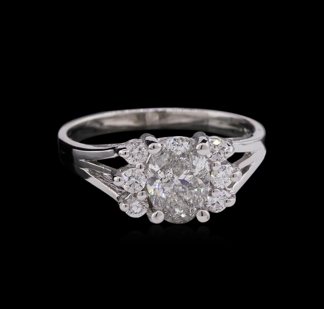 One electronically tested 14KT white gold lady's cast wedding ring with a split shank with a bright polish finish. The featured lady's ring has a shank measuring 2.00 millimeters wide. Identified with markings of "14K". Condition is new, good workmanship. Containing: One prong set oval shaped cut diamond, measuring 7.49 x 5.38 x 3.58mm (depth est.) , 10.00.%. GTCF approximate weight of 1.00ct. Graded in the setting. Clarity: I-2. Color: J - Good Six prong set round brilliant cut diamonds, measuring 2.10 - 2.05 x 1.33mm (depth est.) approximate total weight of 6 Stones = 0.21ct. Graded in the setting. Clarity: SI-1 to SI-2. Color: H - I. Cut Good. Total Weight of Diamonds 1.21ct. Total Weight of Ring 3.00gm. GAS Appraised at $5,225.00.