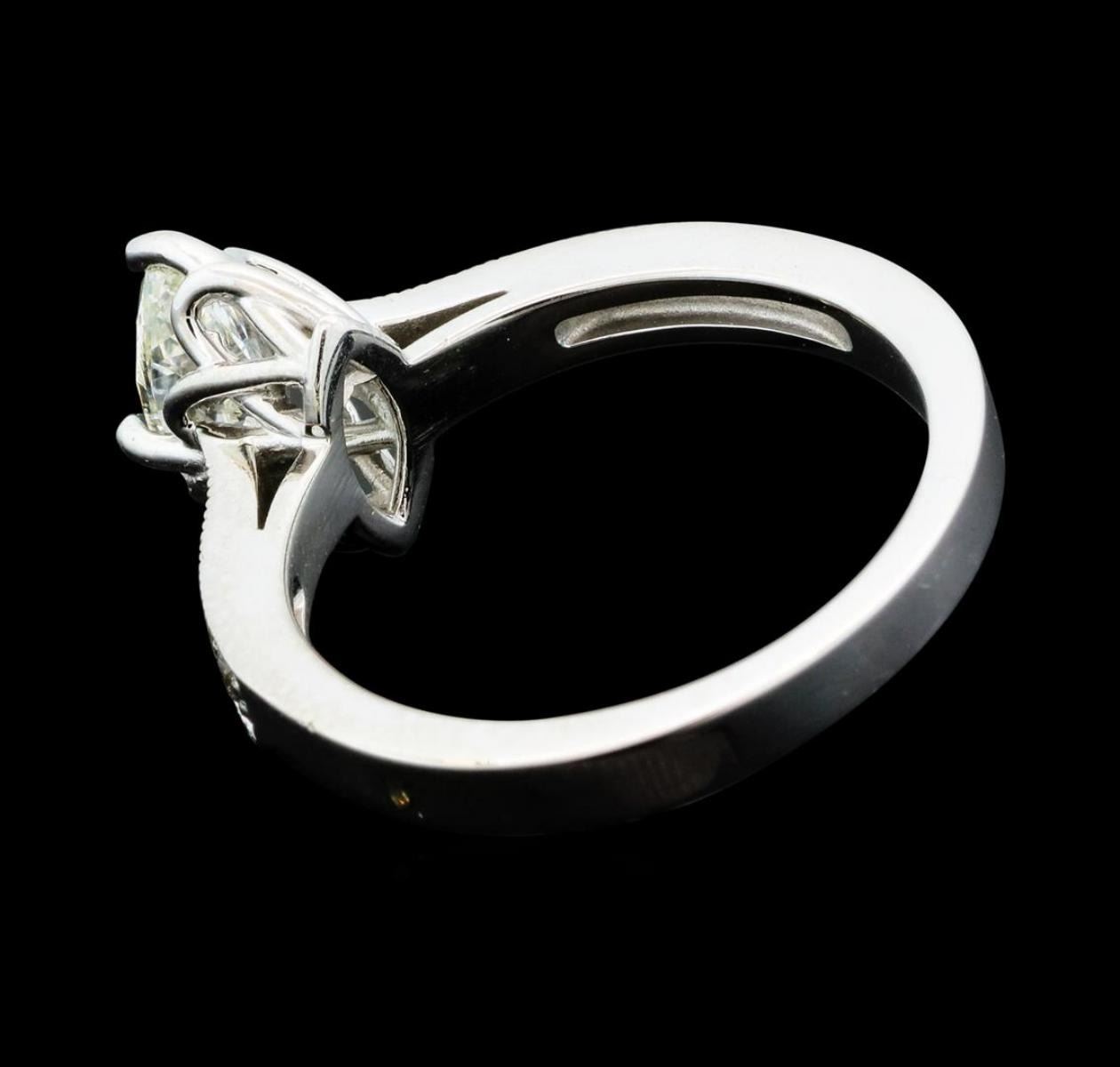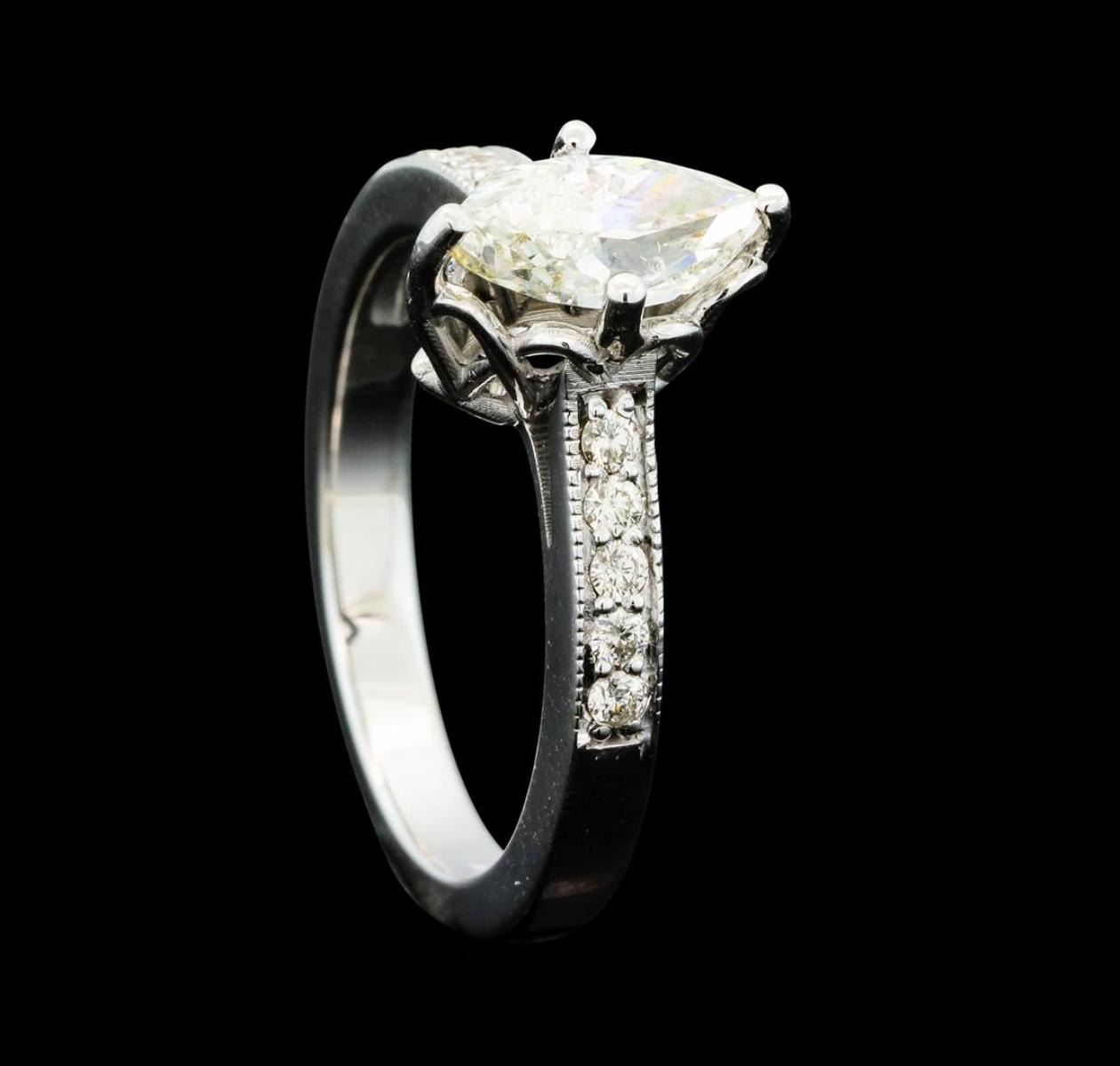 One electronically tested 14KT white gold lady's cast wedding ring with a cathedral shank with a bright polish with milgrain detailing finish. The featured lady's ring has a shank measuring 2.61 millimeters wide. Identified with markings of '14K'. Condition is new, good workmanship. Containing: One prong set marquise shaped cut diamond, measuring 8.90 x 4.70 x 3.56mm (depth est.) , 15.00.%. GTCF approximate weight of 1.02ct. Graded in the setting. Clarity SI-2. Color: I - J Cut Good Ten prong set round brilliant cut diamonds, measuring 1.80 - 1.70 x 1.05mm (depth est.) approximate total weight of 10 Stones = 0.19ct. Graded in the setting. Clarity SI-1 to I-1. Color: H - I Cut Very Good. Total Weight of Diamonds 1.21ct.. Total Weight of Ring 4.80gm. GAS Appraised.