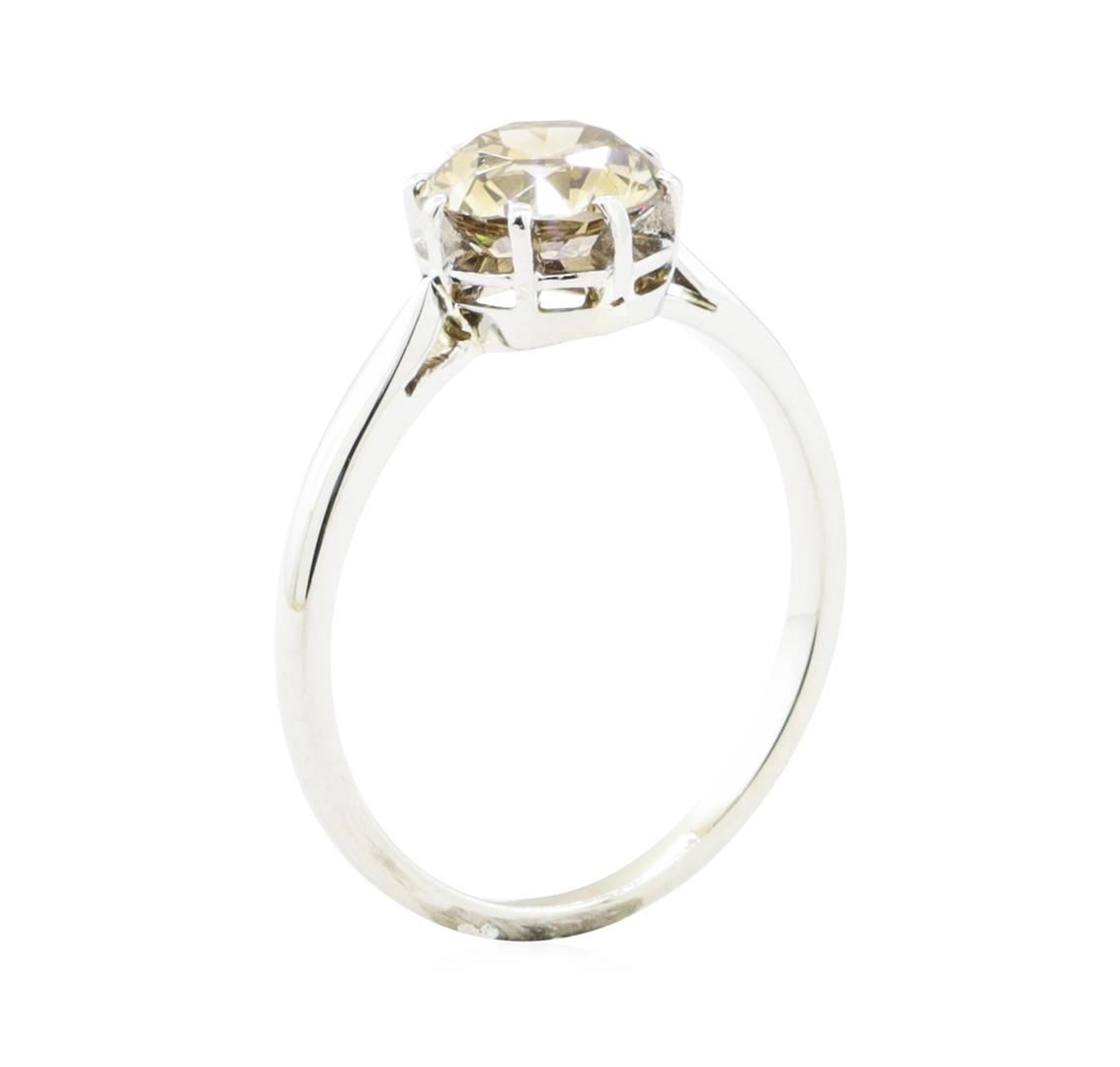 One electronically tested 14KT white gold lady's combination cast & assembled fashion solitatire ring with a bright polish finish. The featured lady's ring has a shank measuring 1.40 millimeters in width. Condition is Good. Containing: One prong set old mine cut diamond, measuring 6.85 - 6.74 x 3.91mm (depth est.) approximate weight of 1.21ct. Graded in the setting. Color Fancy Brown-Yellow Clarity VS-2 Cut Very Good. Total Weight of Diamonds 1.21ct.. Total Weight of Ring 2.30gm GAS Appraised at $12400.00. GAS Appraised.