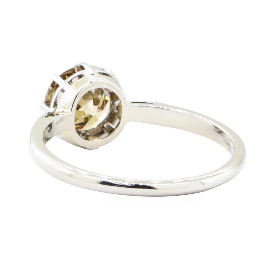 One electronically tested 14KT white gold lady's combination cast & assembled fashion solitatire ring with a bright polish finish. The featured lady's ring has a shank measuring 1.40 millimeters in width. Condition is Good. Containing: One prong set old mine cut diamond, measuring 6.85 - 6.74 x 3.91mm (depth est.) approximate weight of 1.21ct. Graded in the setting. Color Fancy Brown-Yellow Clarity VS-2 Cut Very Good. Total Weight of Diamonds 1.21ct.. Total Weight of Ring 2.30gm GAS Appraised at $12400.00. GAS Appraised.